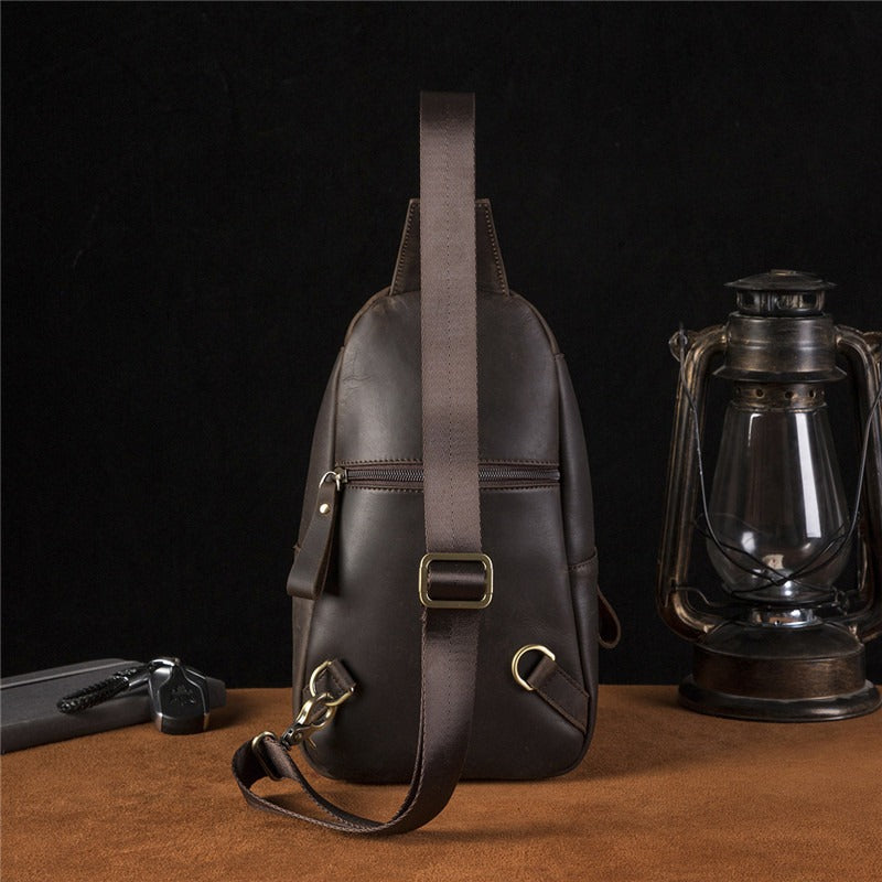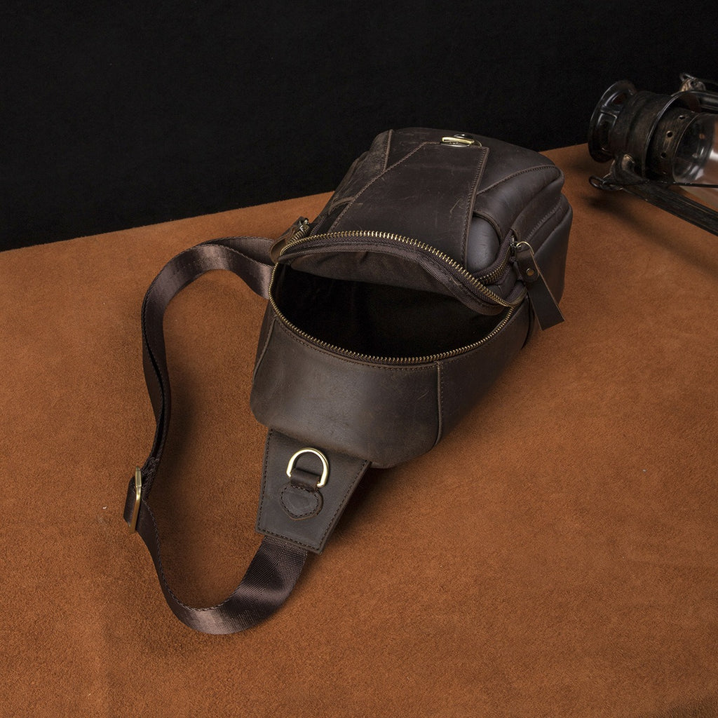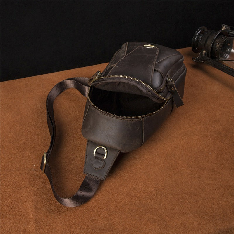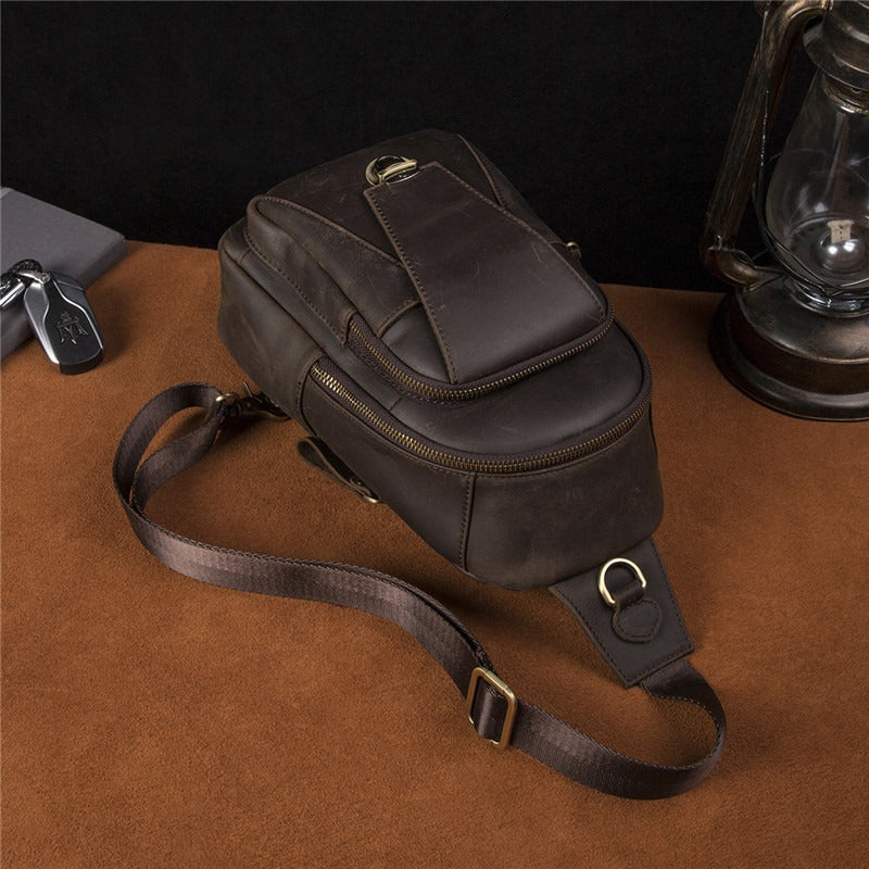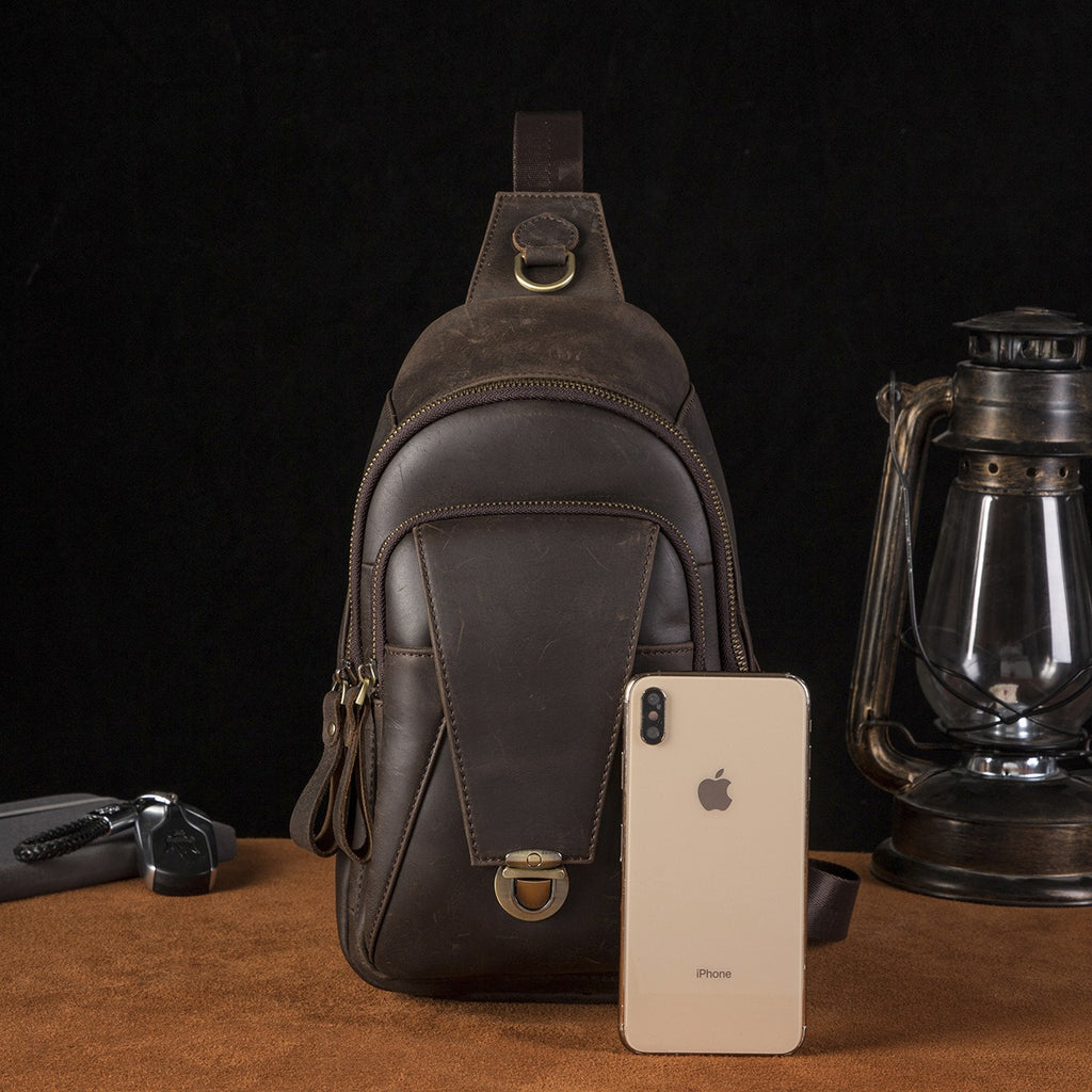 Design: Cool Leather Sling Packs Crocodile Pattern Black Leather Sling Bag Sling Crossbody Packs For Men