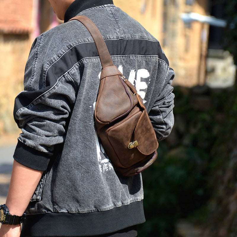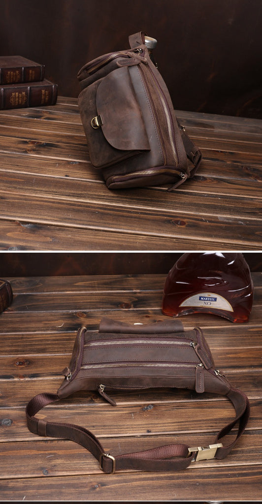 Style: Brown Leather Mens Fanny Packs Hip Packs Sling Bags Sling Pack Waist Bags for Men