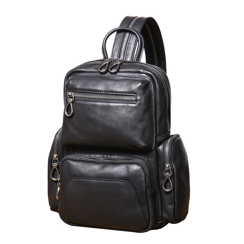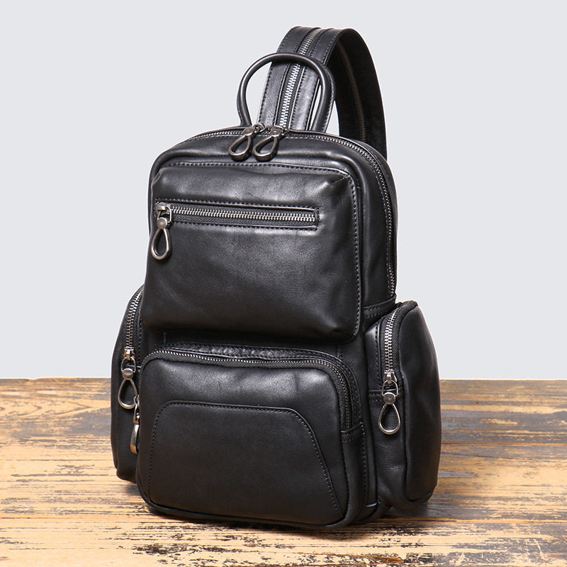 Style: Black Sling Leather Backpack Convertible Black Leather Sling Backpack for Men