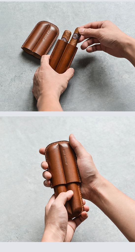 Style: Cool Beige Leather Mens 2pcs Cigar Case Cool Custom Leather Cigar Case for Men