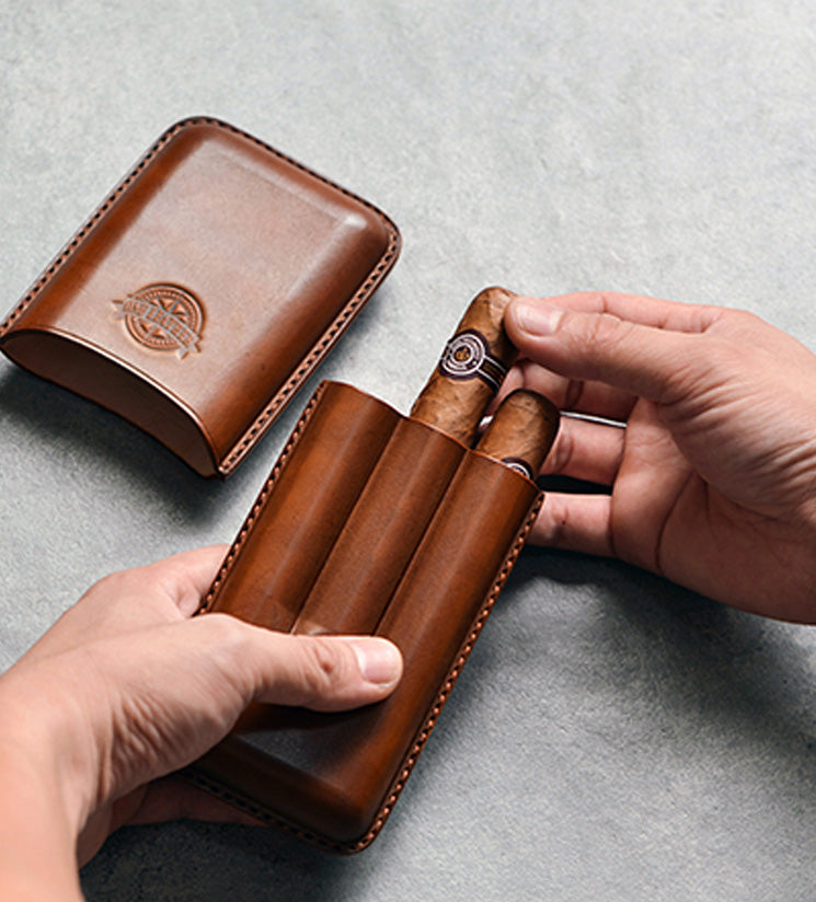 Style: Cool Beige Leather Mens 3pcs Cigar Case Cool Custom Leather Cigar Case for Men