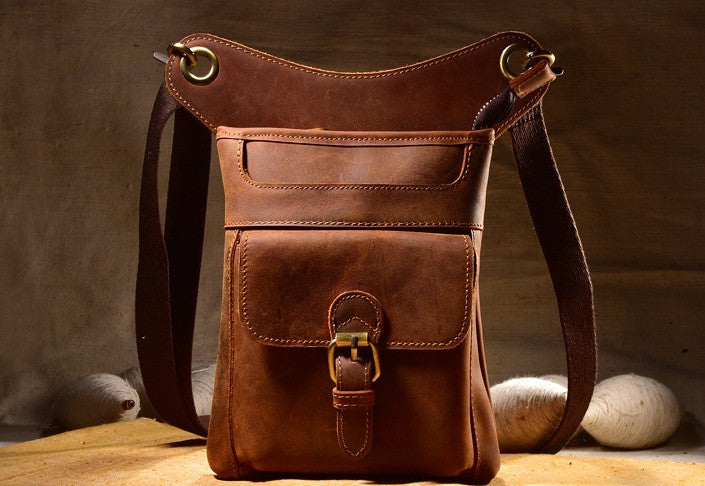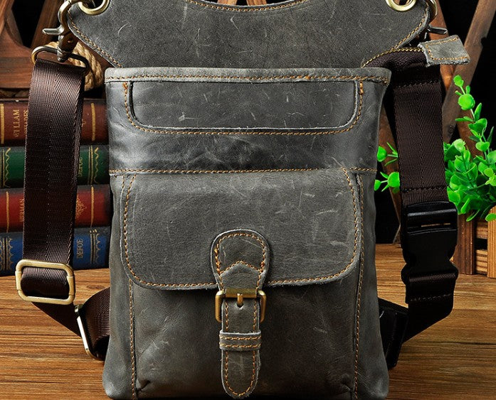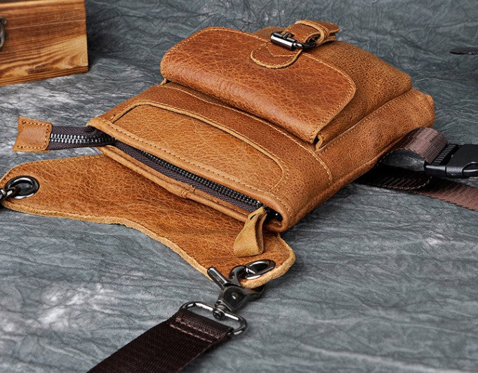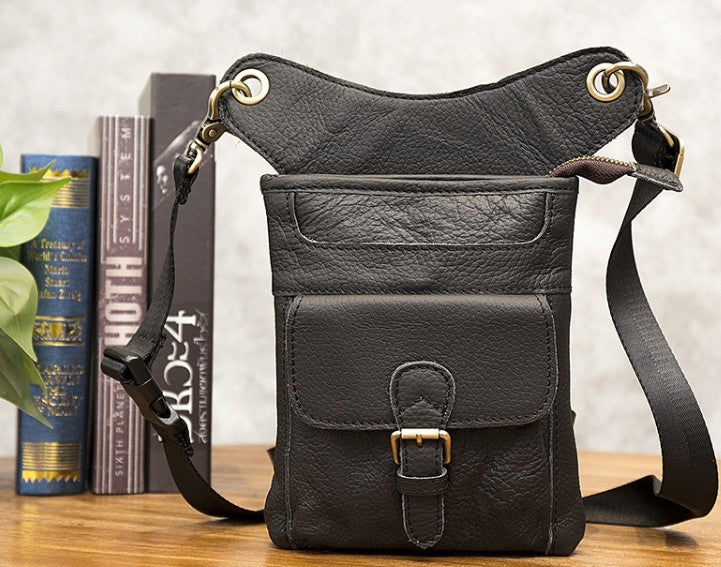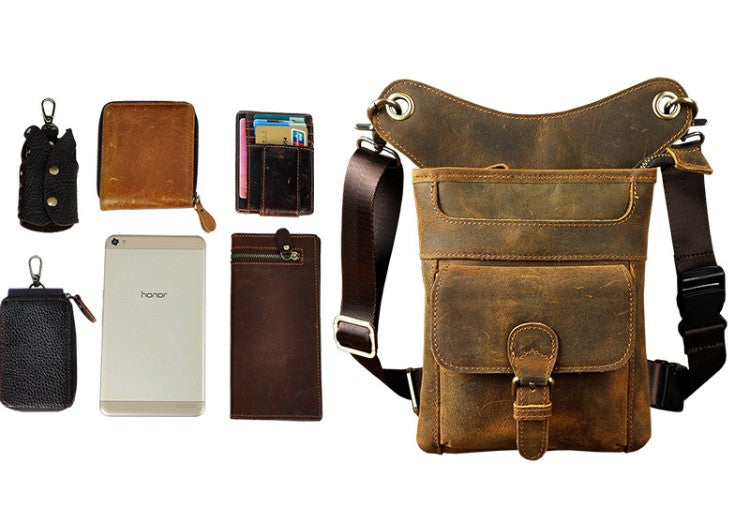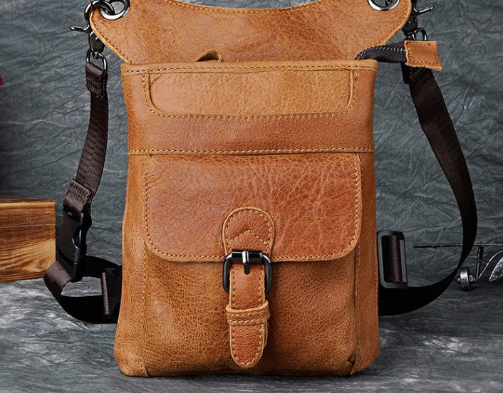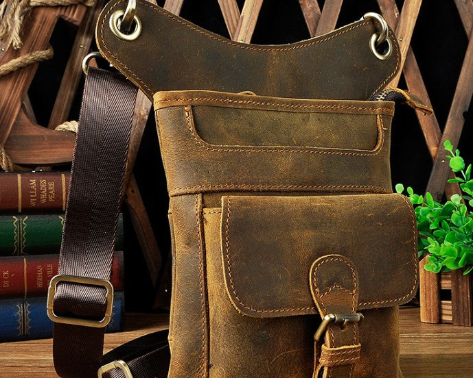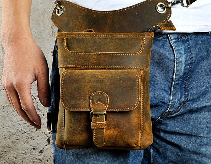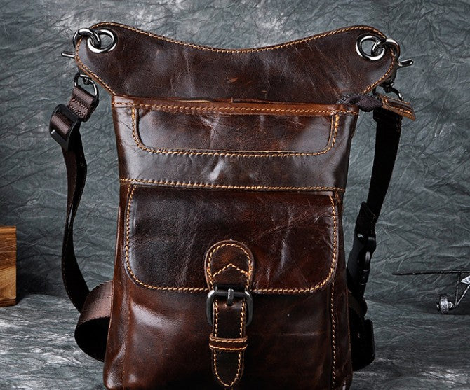 Design: Cool Leather Drop Leg Bag Belt Pouch Mens Waist Bag Shoulder Bag for Men