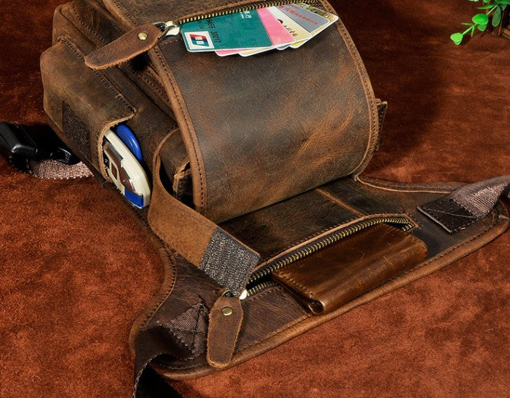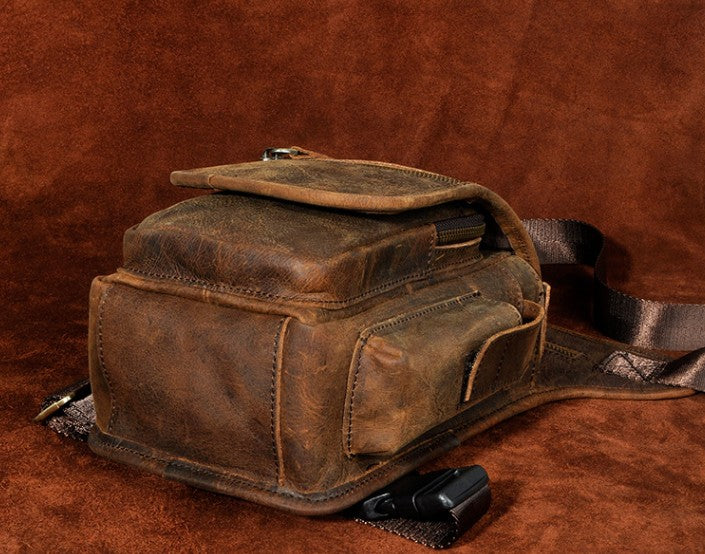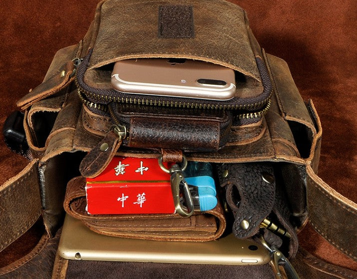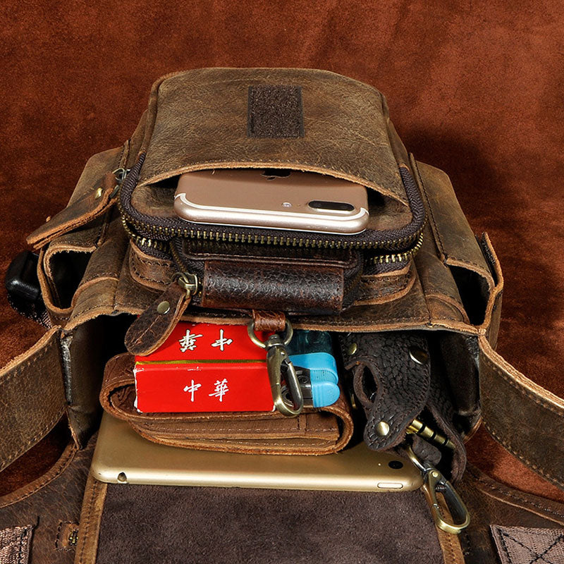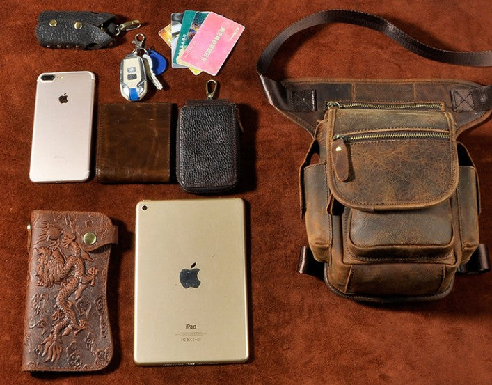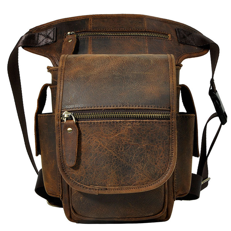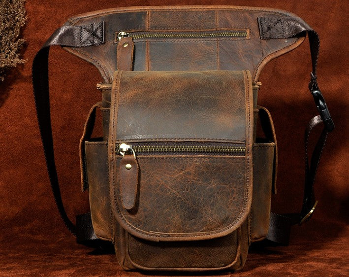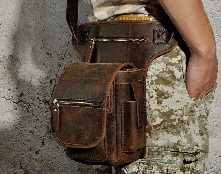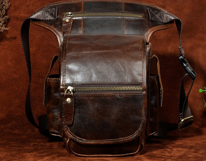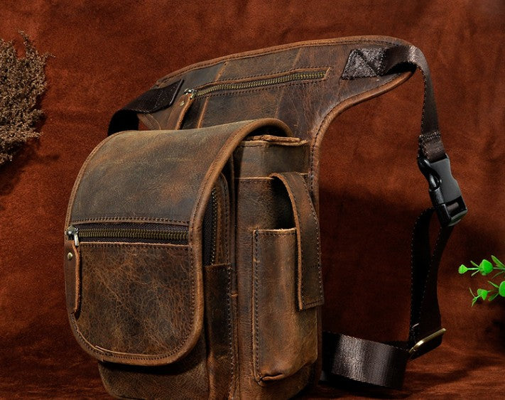Design: Cool Biker Mens Leather Drop Leg Bag Side Bag Waist Bag Shoulder Bag for Men
