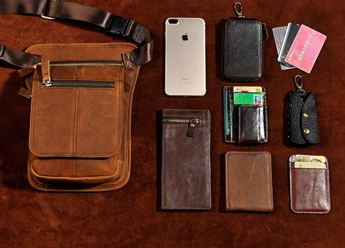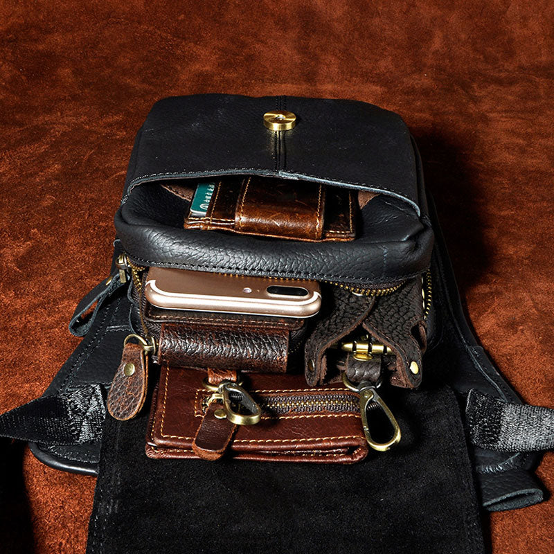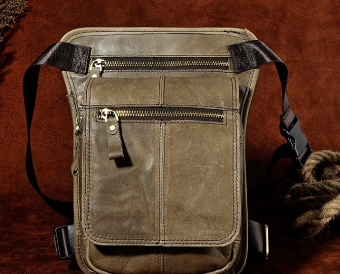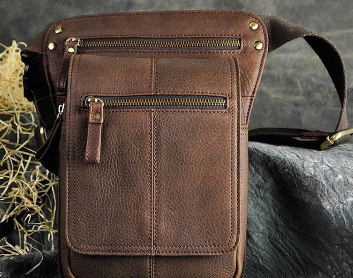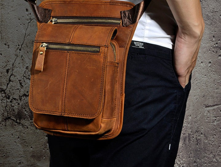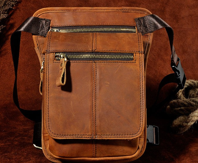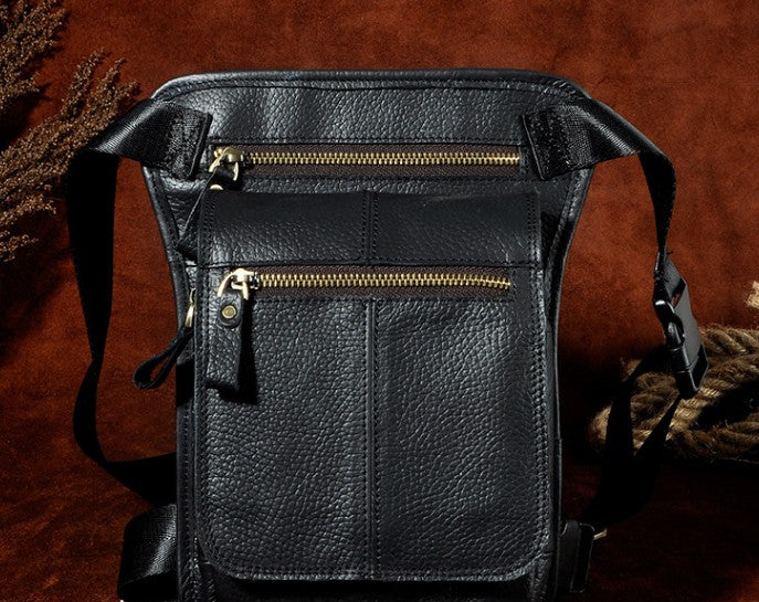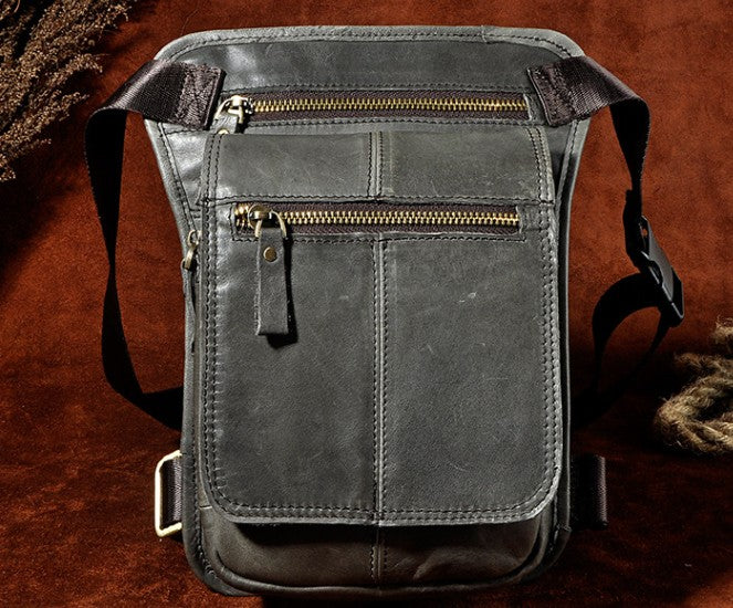 Design: Cool Biker Mens Leather Drop Leg Bag Waist Bag Side Bag Shoulder Bag for Men
