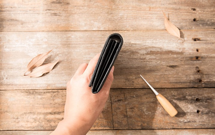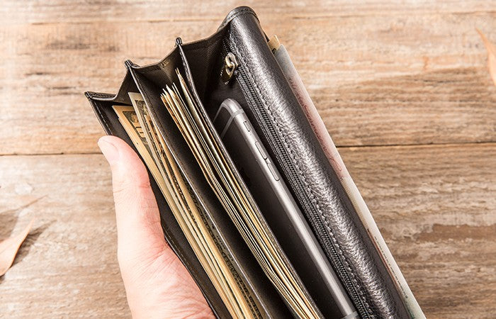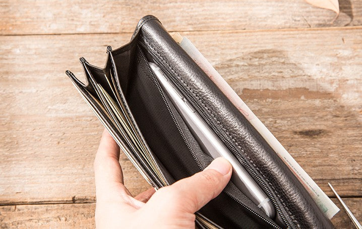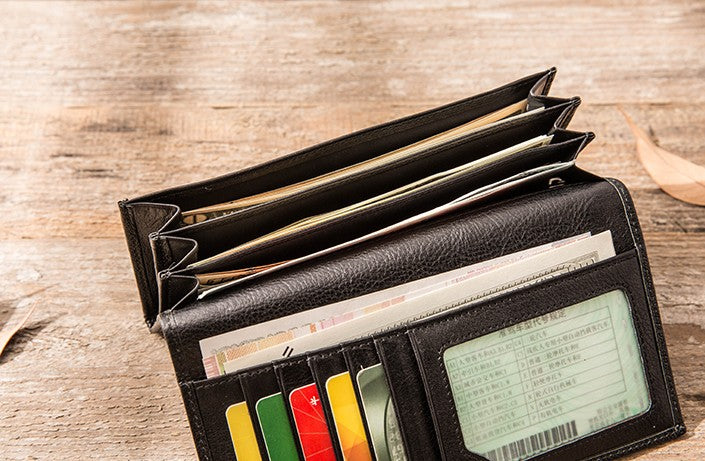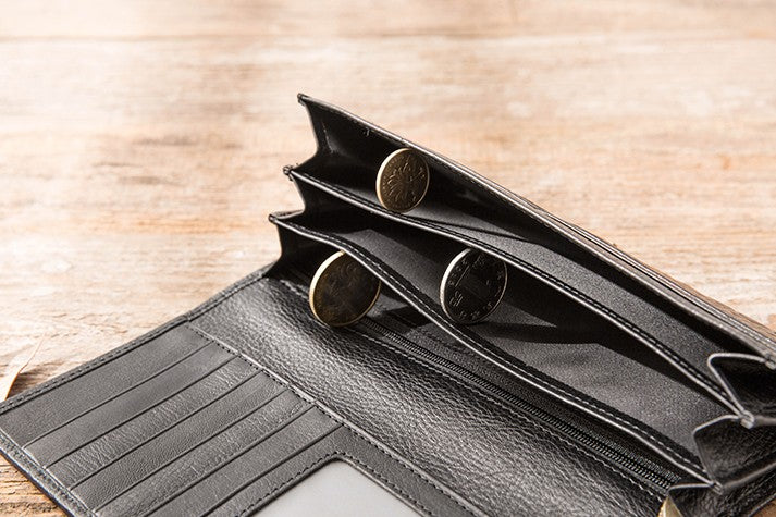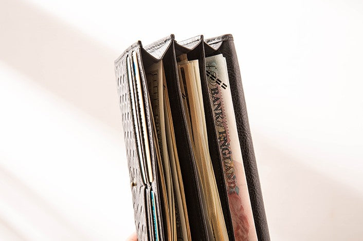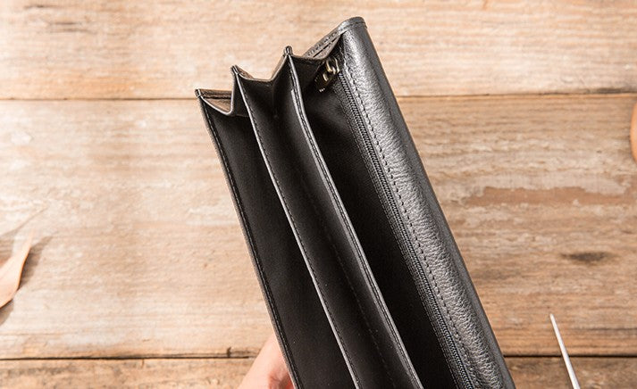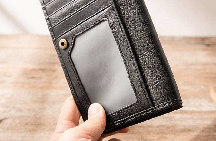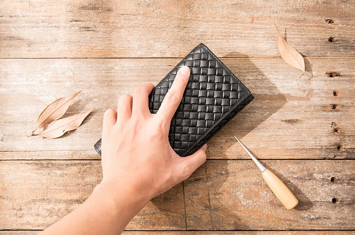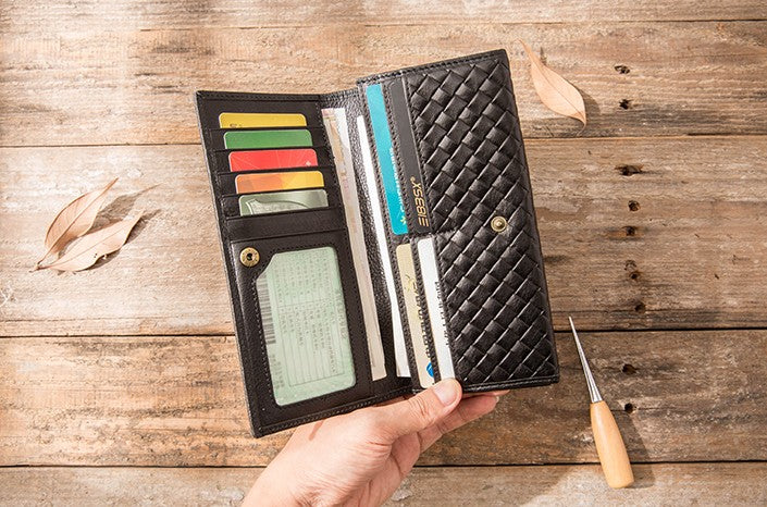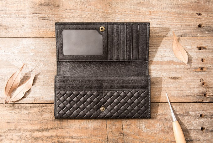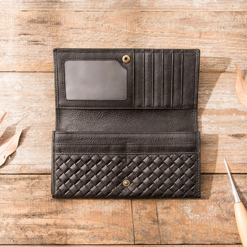 Style: Cool Black Braided Leather Mens Long Wallet Long Wallet for Men