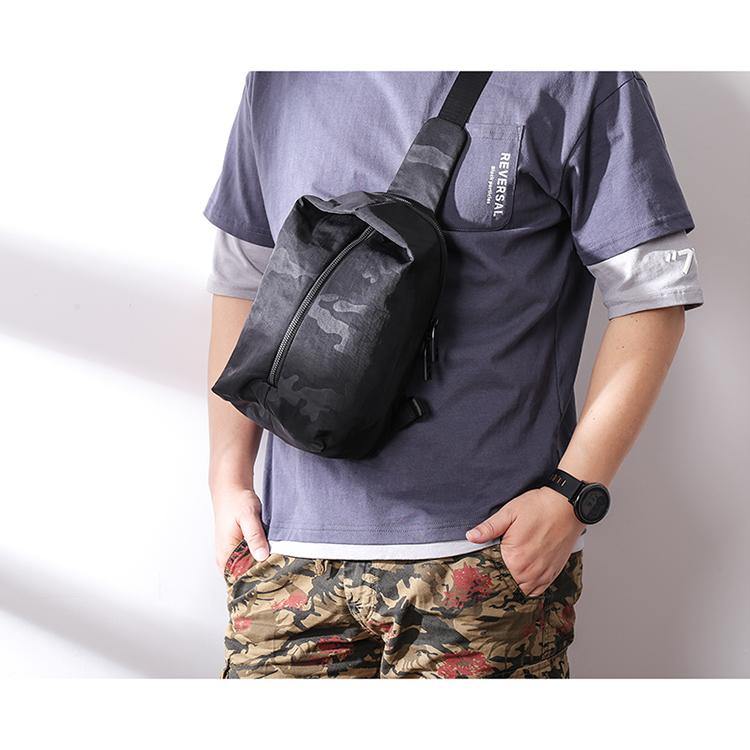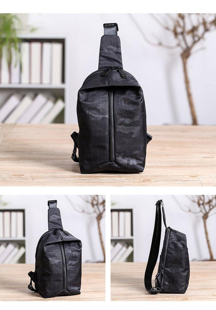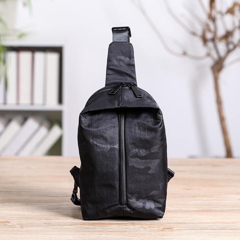 Design: Cool Black Canvas Backpack Camouflage Men's Sling Bag Chest Bag One shoulder Backpack Sports Bag For Men
