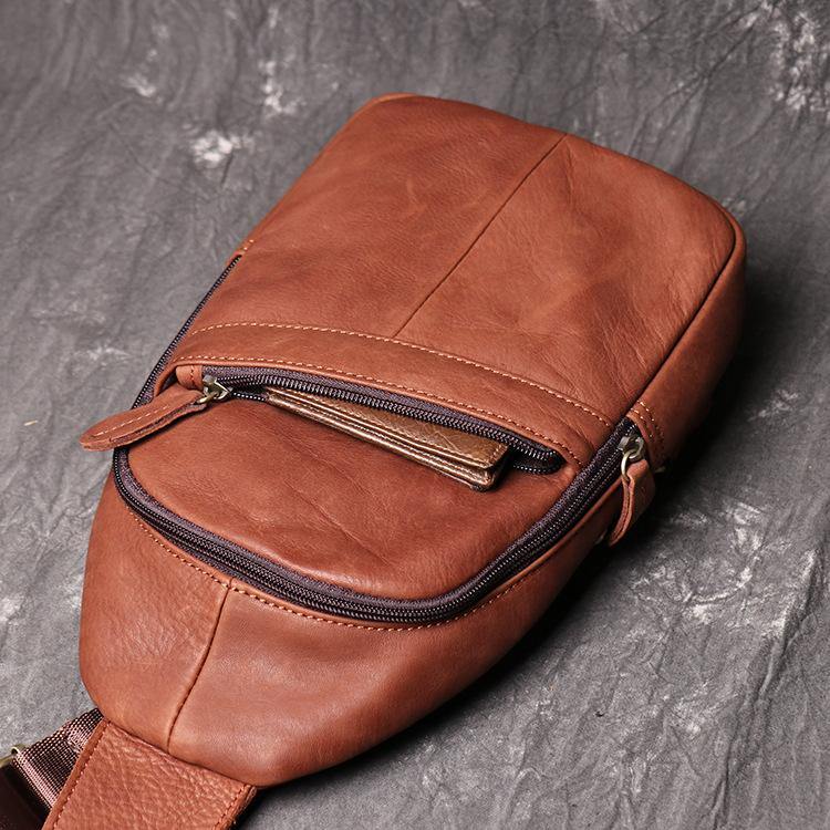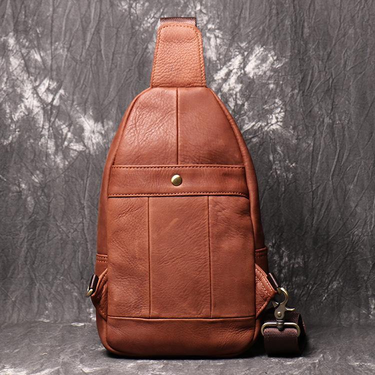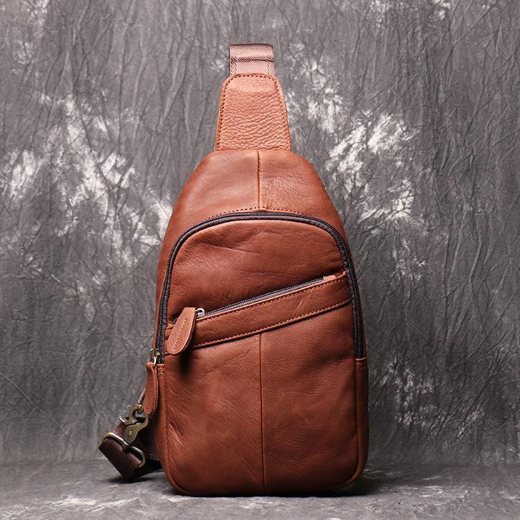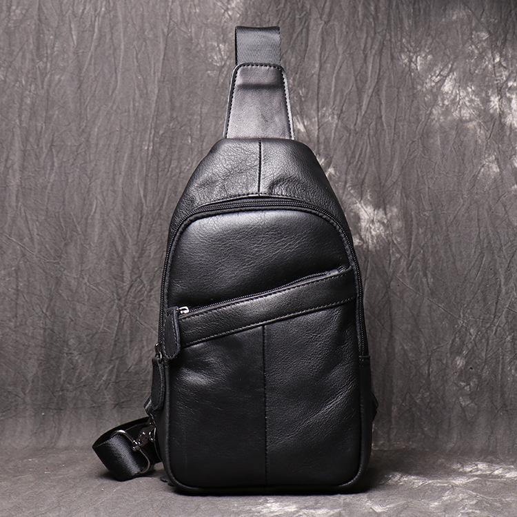 Style: Cool Black Leather Backpack Men's 8-inch Brown Sling Bag Chest Bag One shoulder Backpack Sports Bag For Men