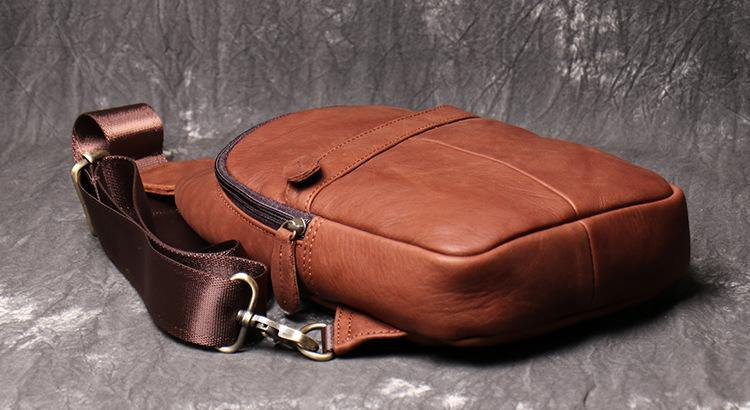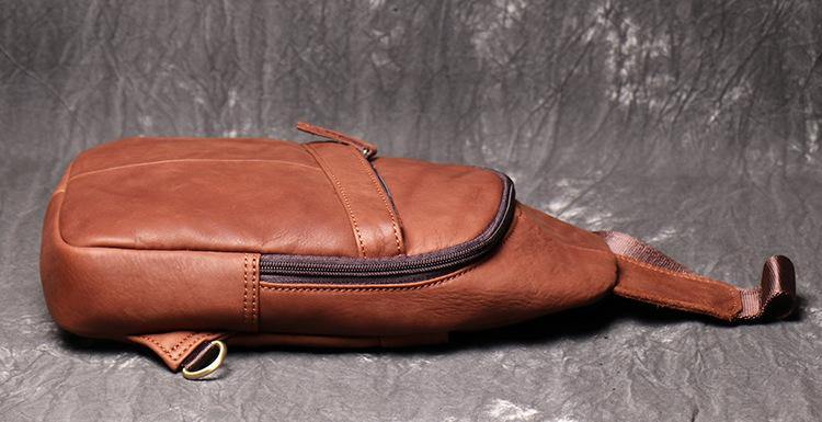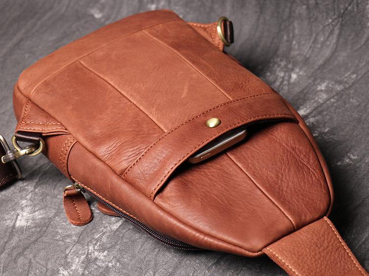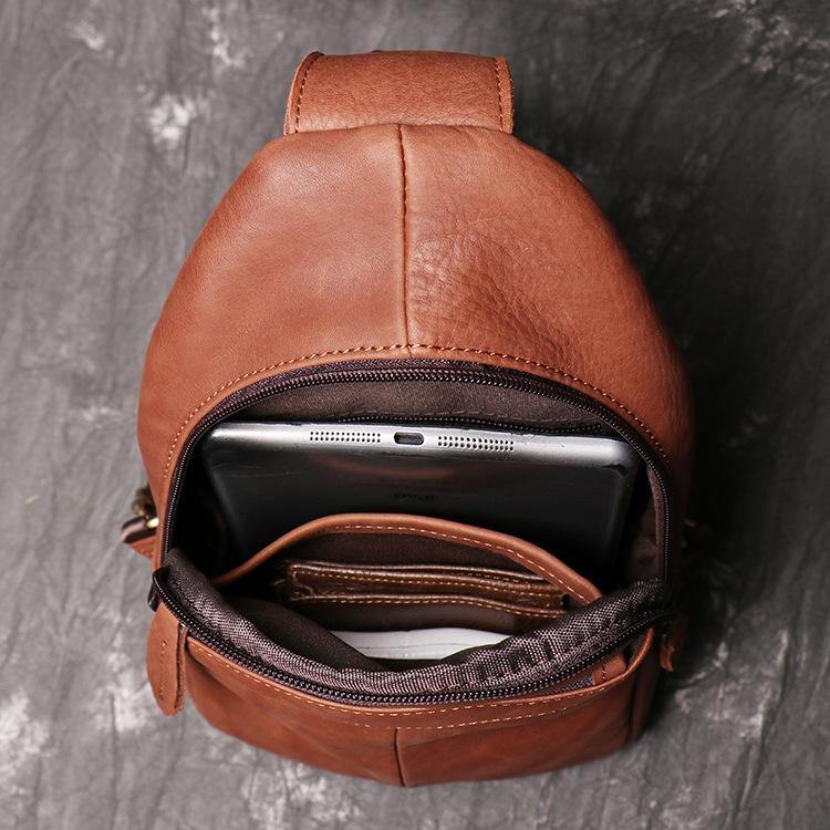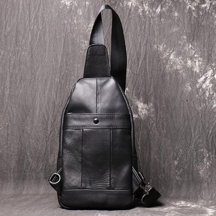 Design: Cool Black Leather Backpack Men's 8-inch Brown Sling Bag Chest Bag One shoulder Backpack Sports Bag For Men