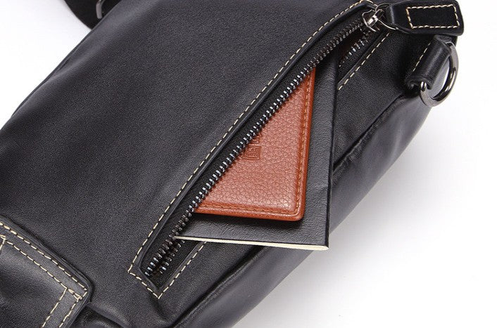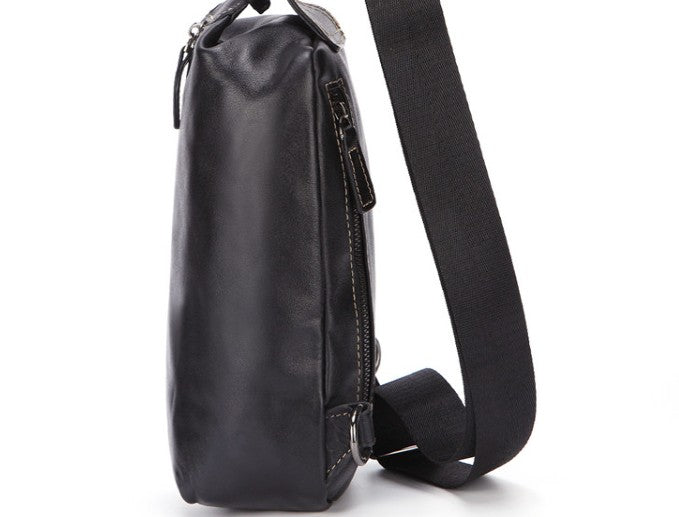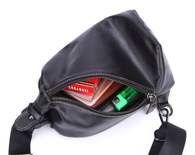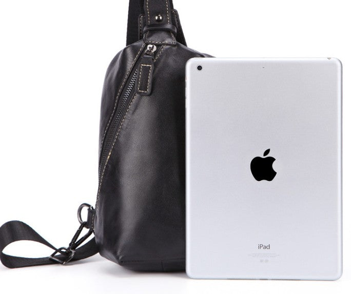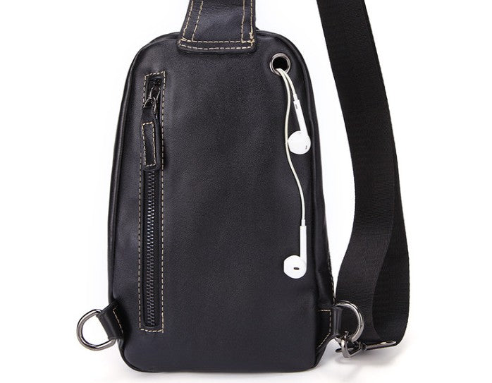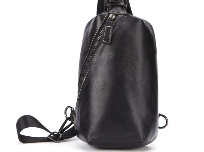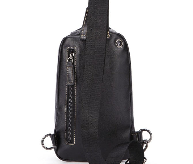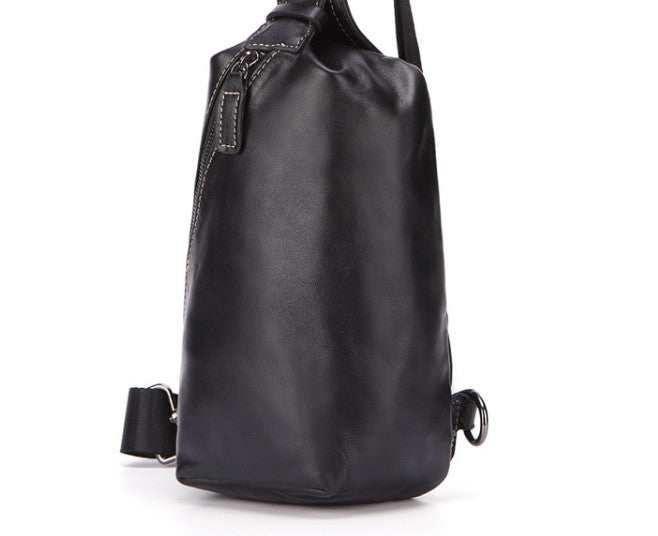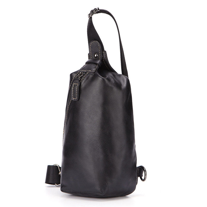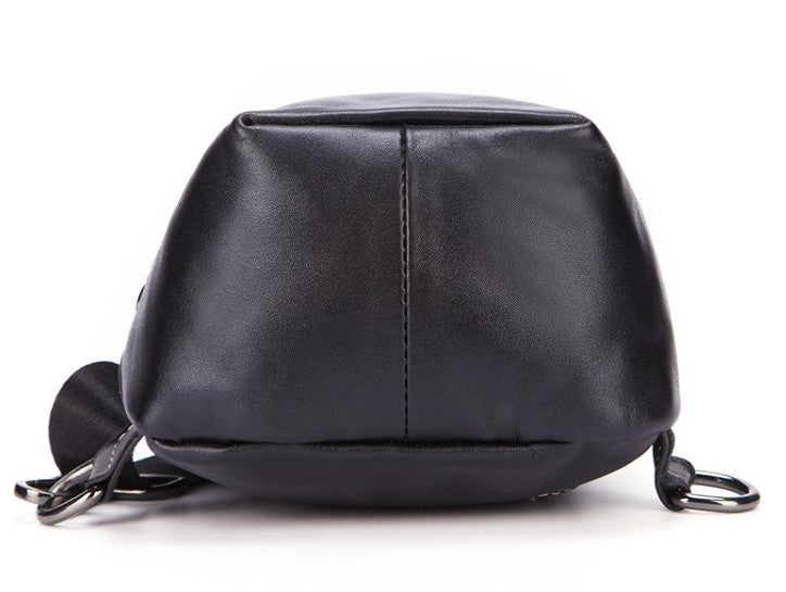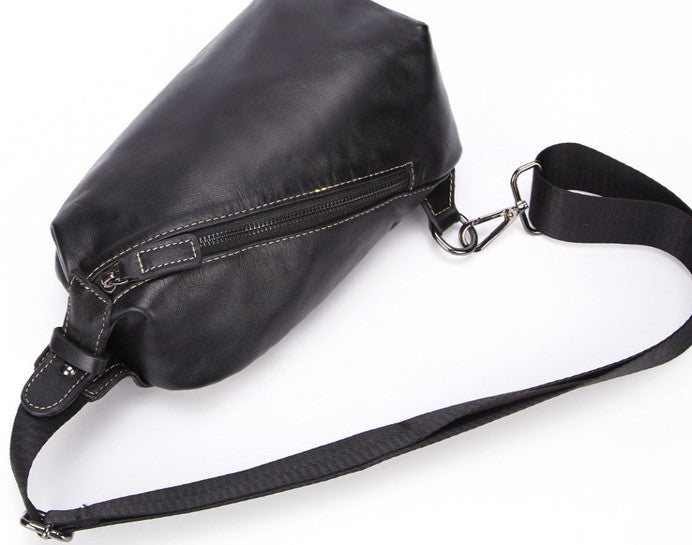Cool Black Leather Chest Bag Sling Bag Crossbody Sling Bag Hiking Sling Bag For Men