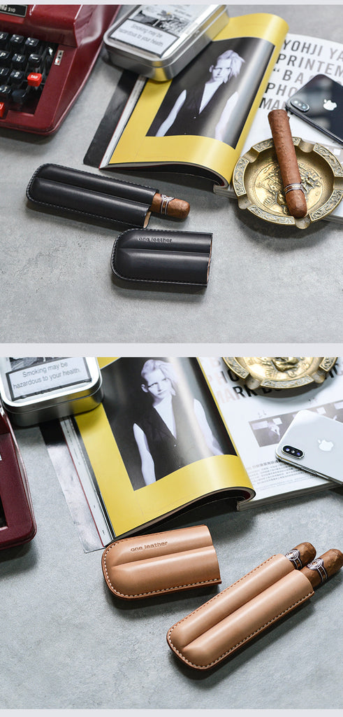 Style: Cool Black Leather Mens 2pcs Cigar Case Cool Custom Leather Cigar Case for Men