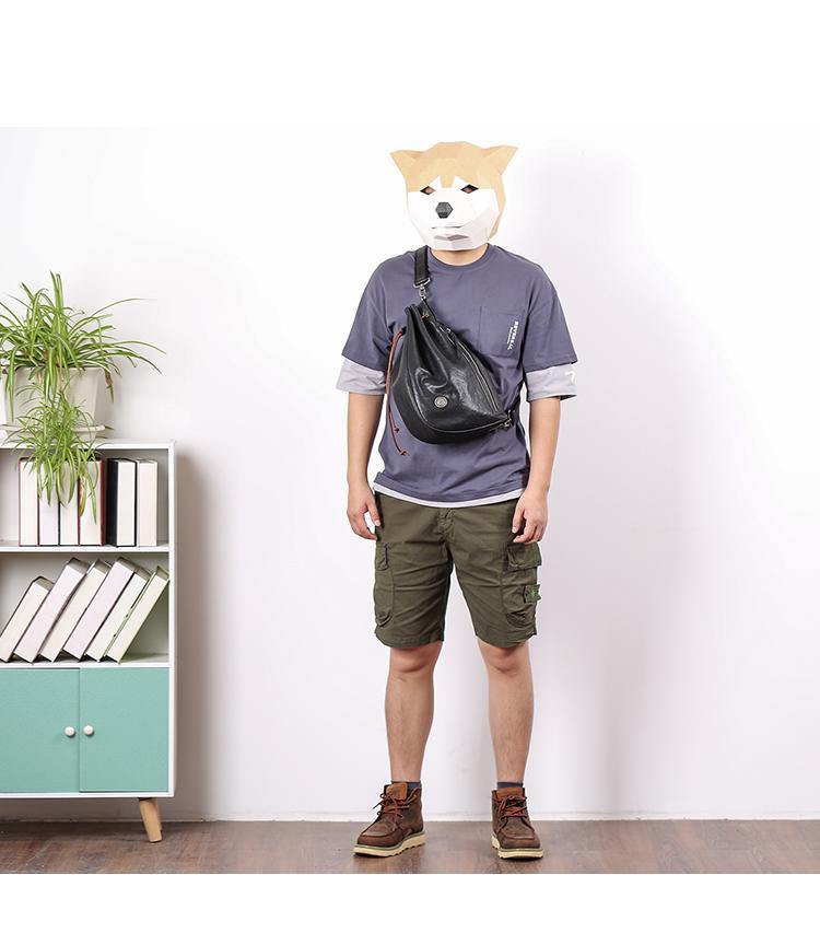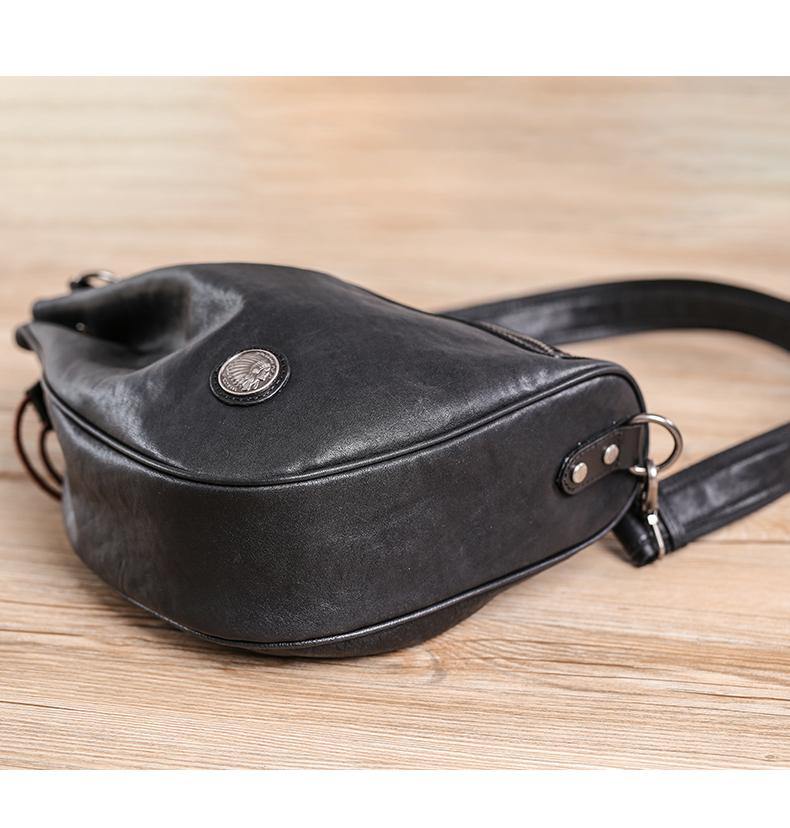 Style: Cool Black Leather Men's Bucket Bag Chest Bag One shoulder Backpack Crossbody Bag For Men