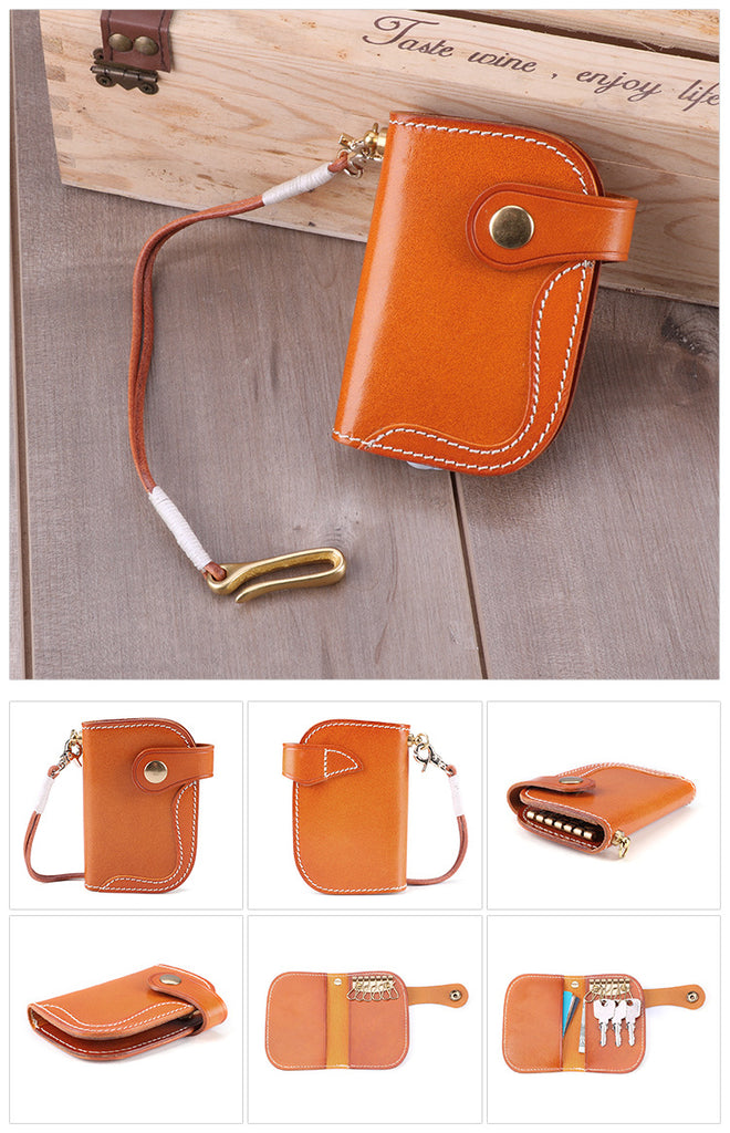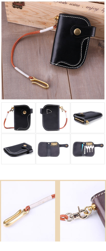 Design: Cool Black Leather Men's Key Wallet Car Key Dark Brown Holder Key Holder For Men