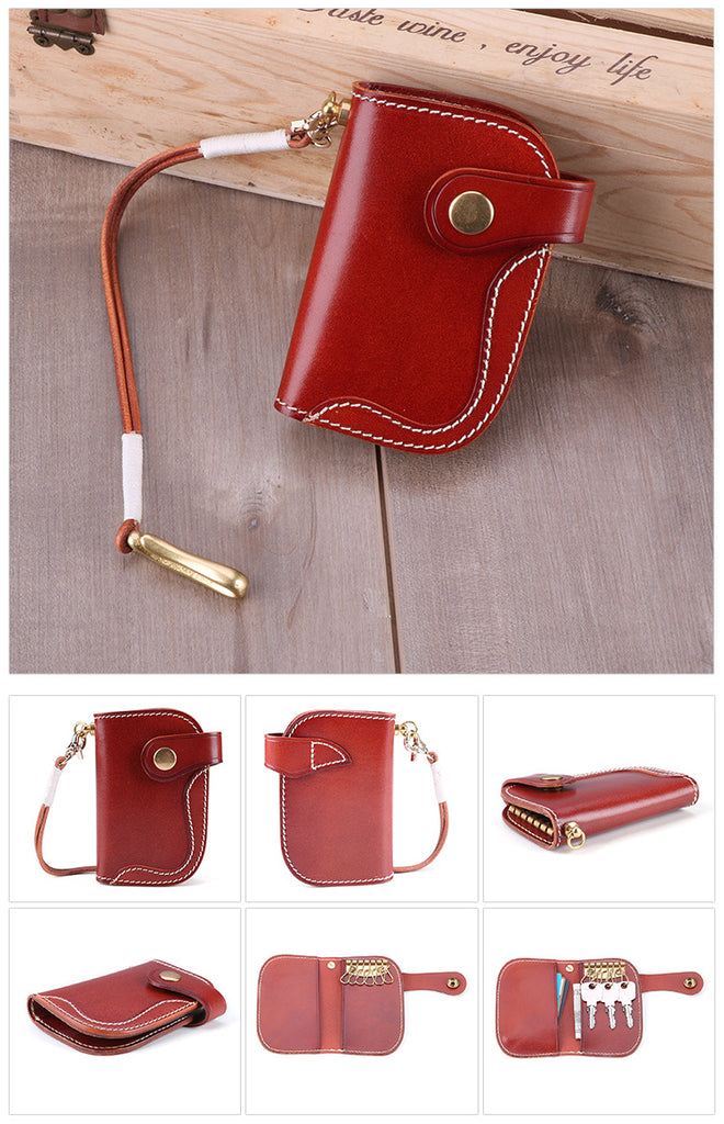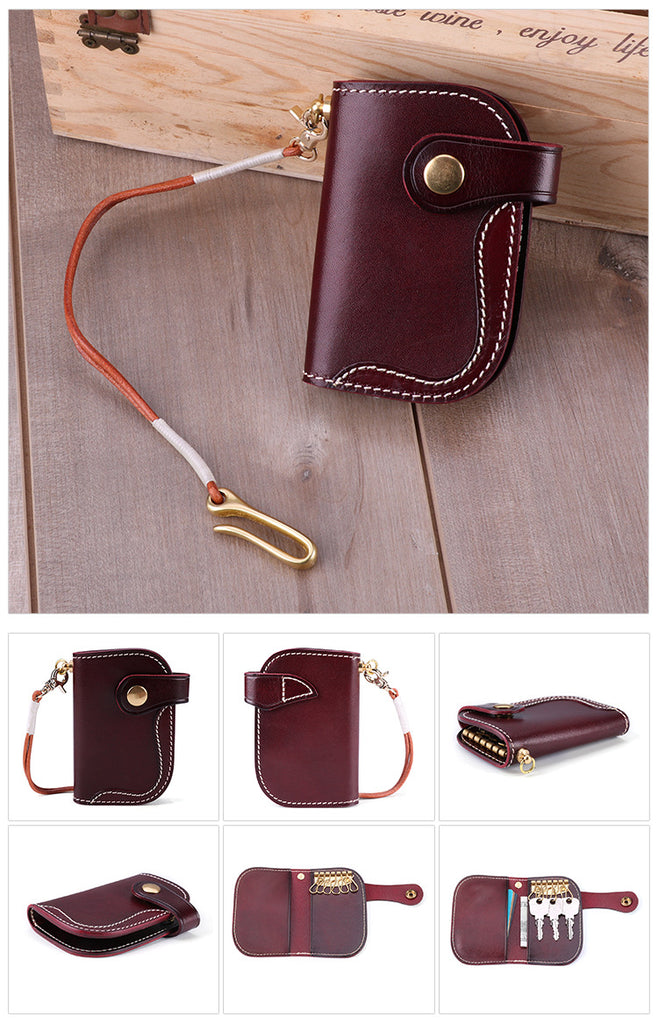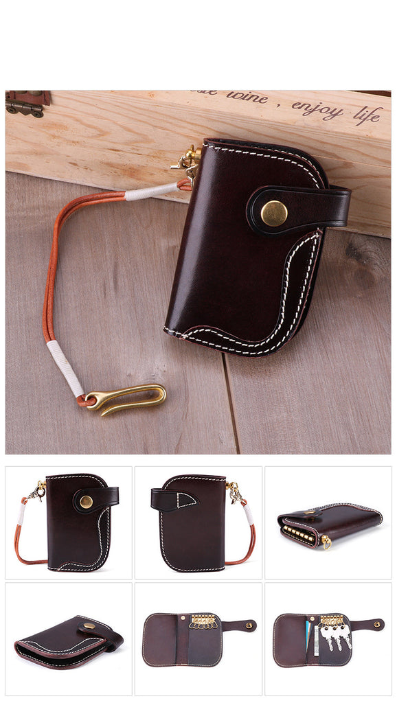 Style: Cool Black Leather Men's Key Wallet Car Key Dark Brown Holder Key Holder For Men