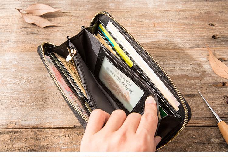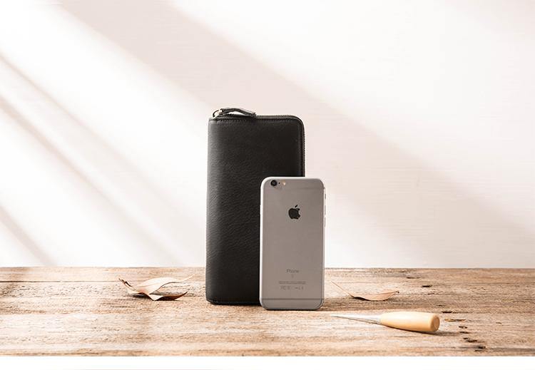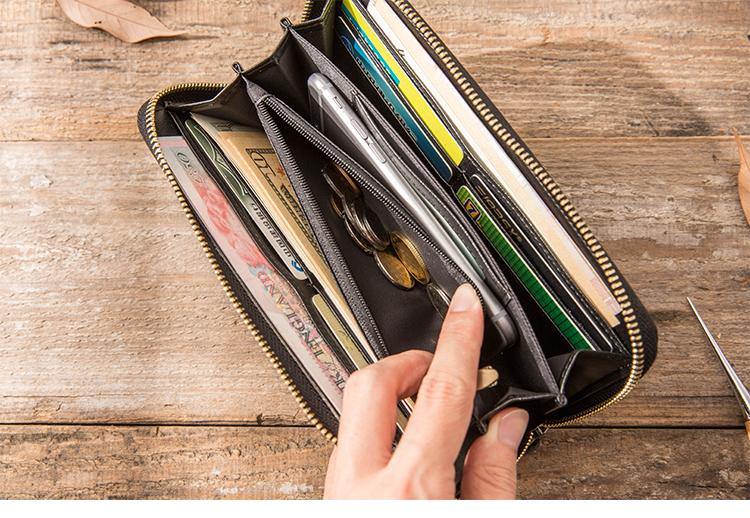 Cool Black Leather Mens Zipper Clutch Wallet Long Wallet Black Cell Phone Long Wallet for Men