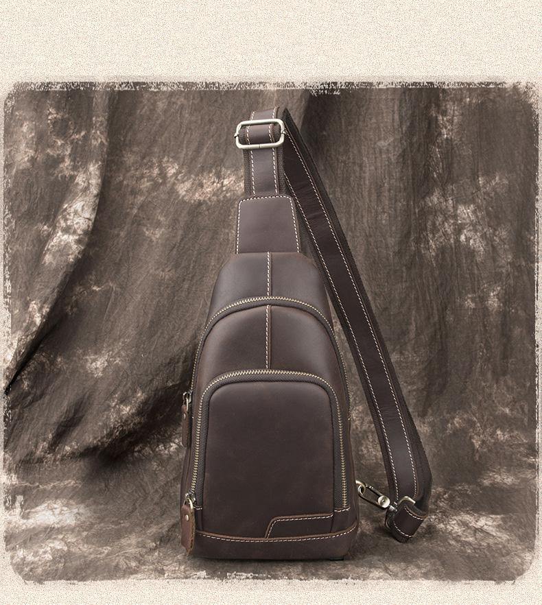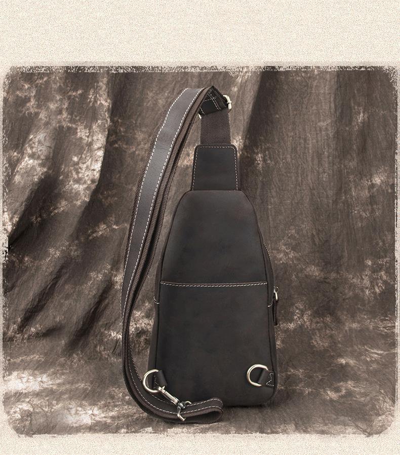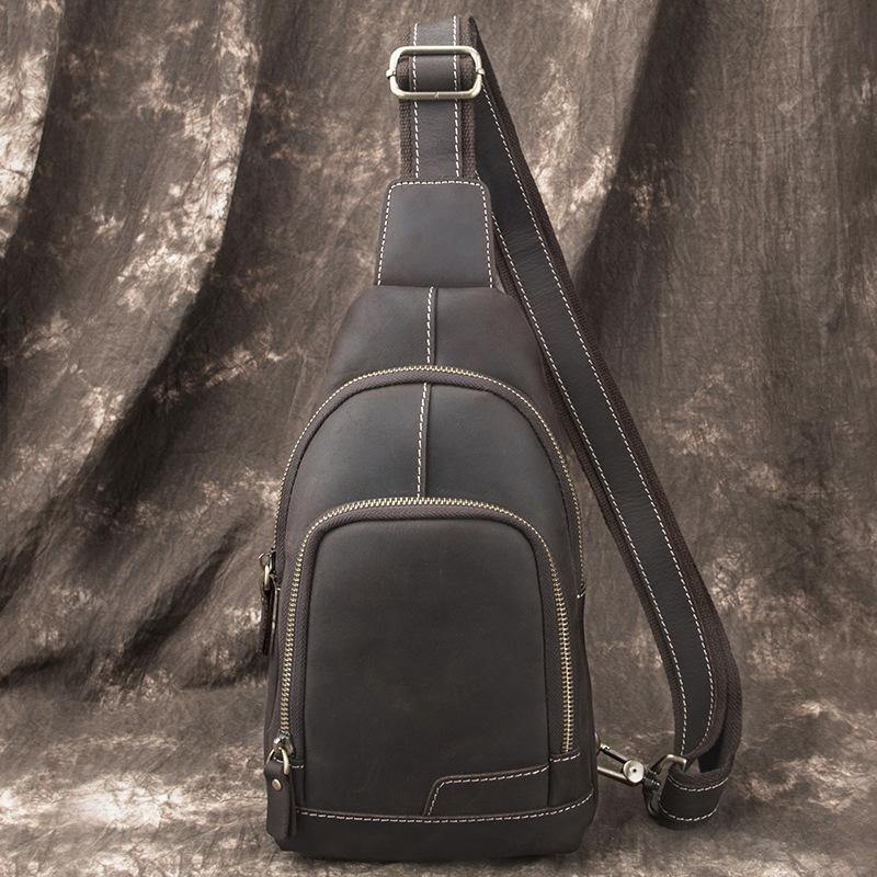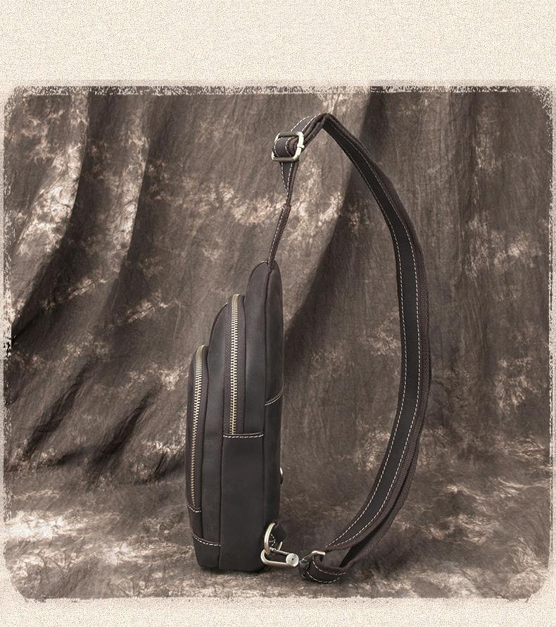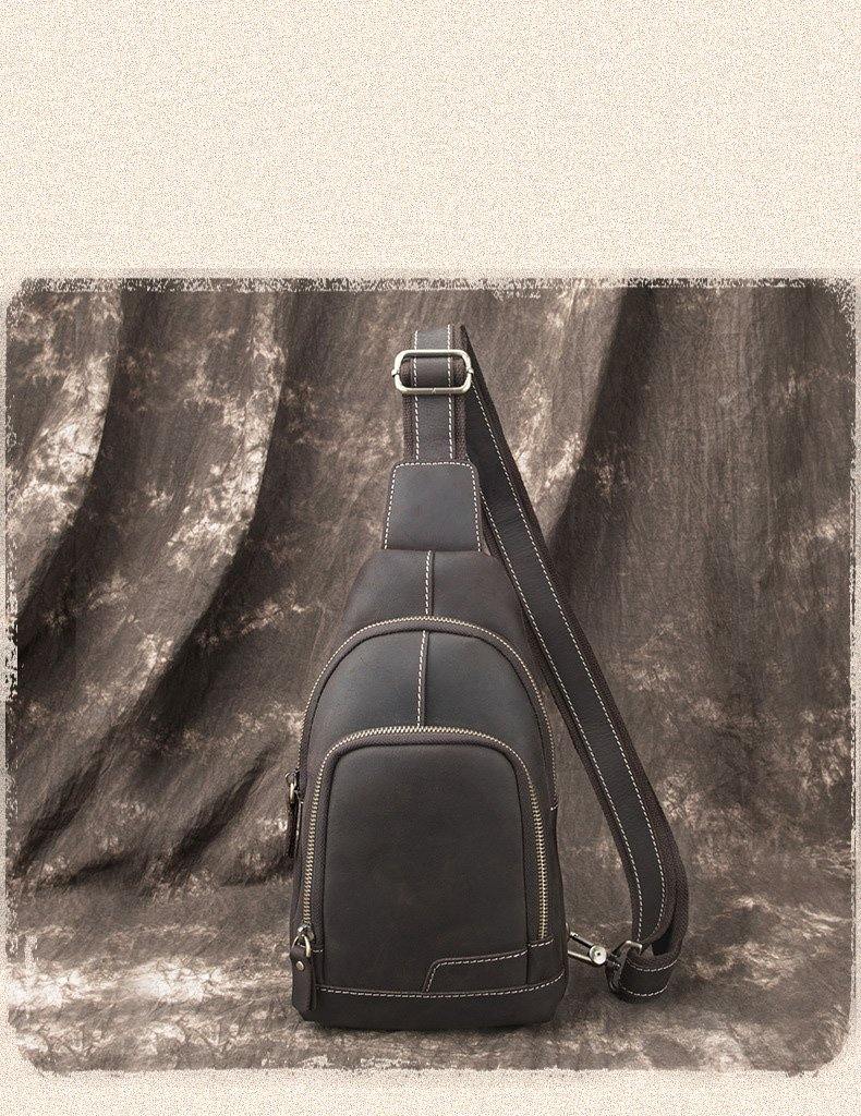 Design: Cool Black Leather Messenger Bag Men's Coffee Small Side Bag Sling Bag Courier Bag For MenOverview: