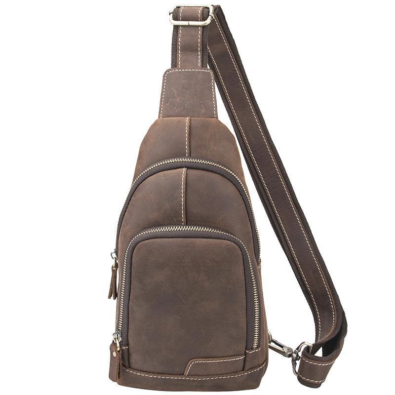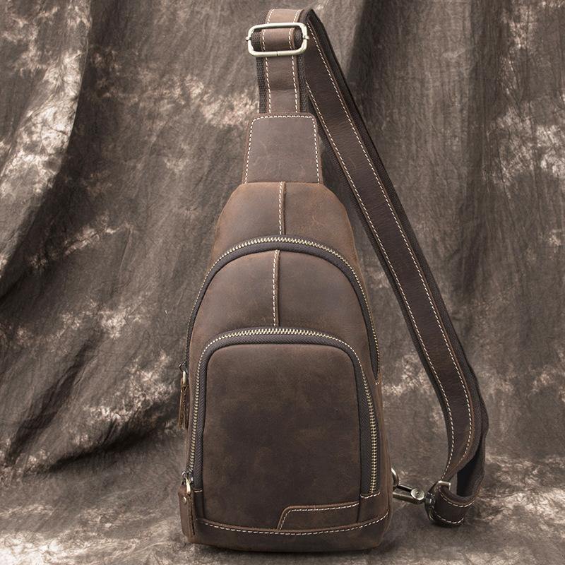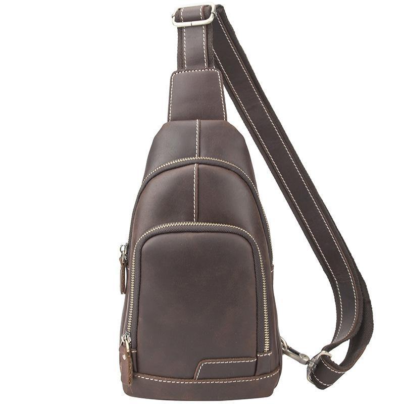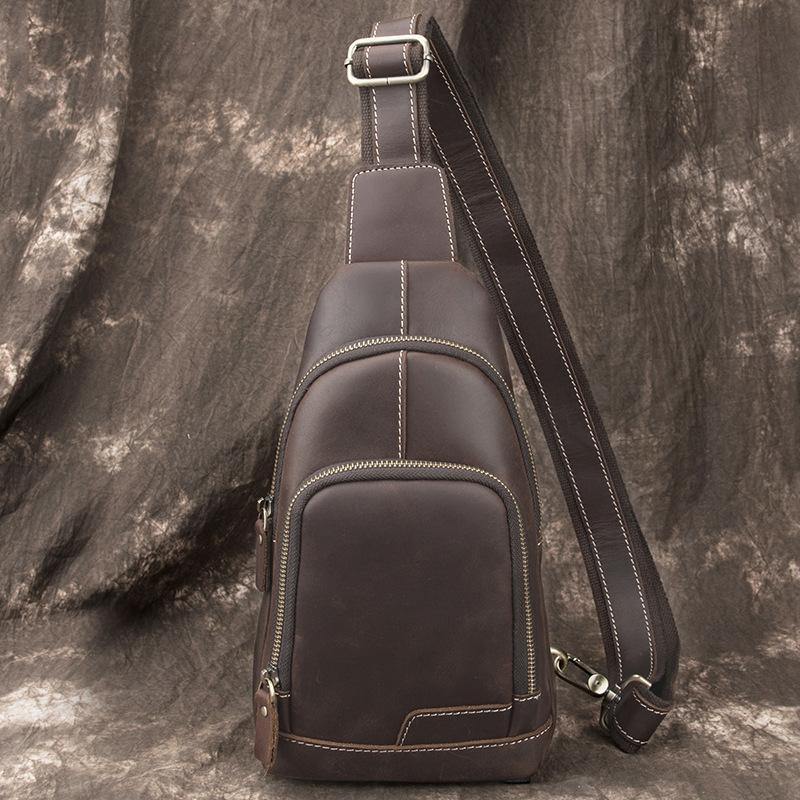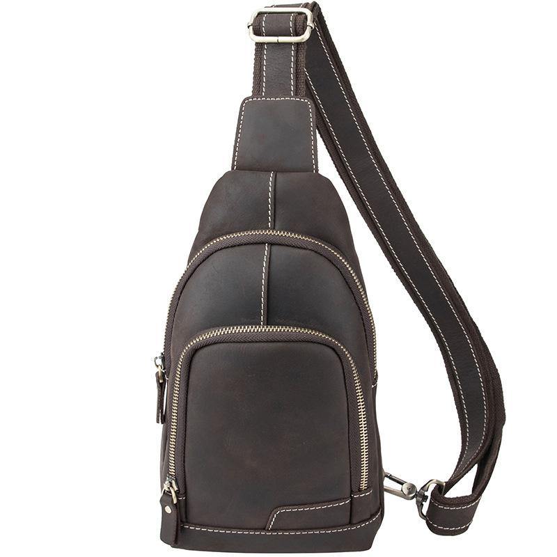 Design: Cool Black Leather Messenger Bag Men's Coffee Small Side Bag Sling Bag Courier Bag For MenOverview: