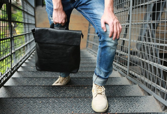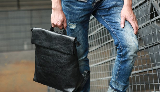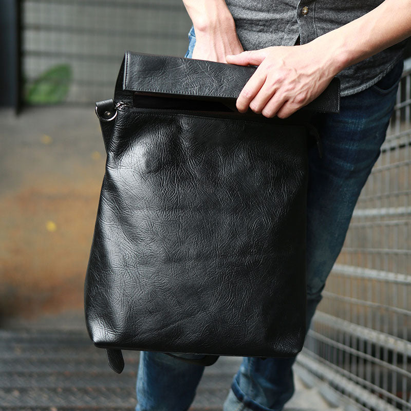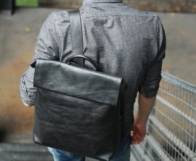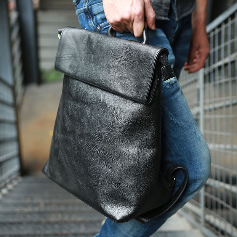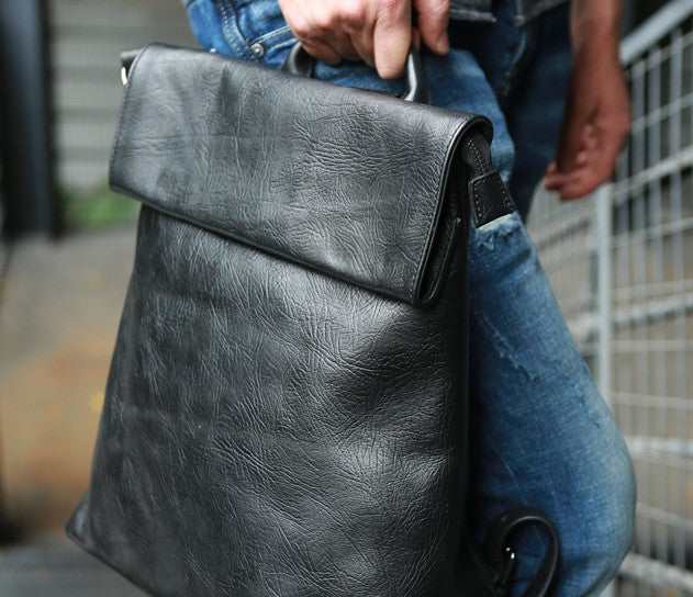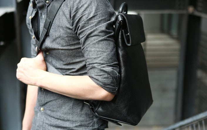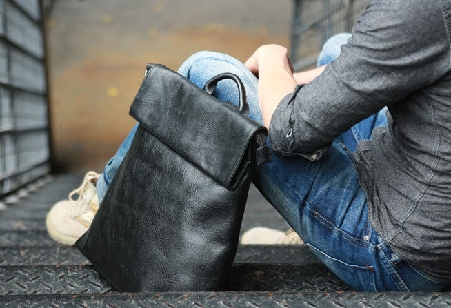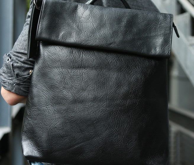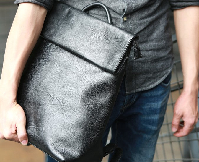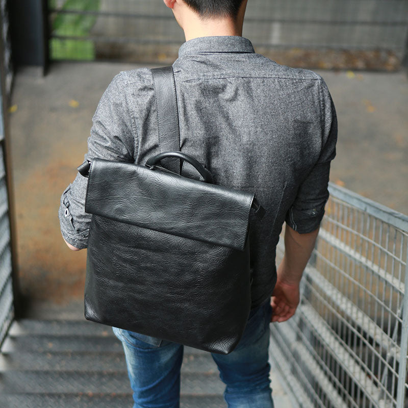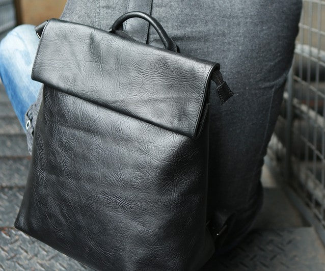 Style: Cool Black Mens Leather Backpack Travel Backpacks Laptop Backpack for men