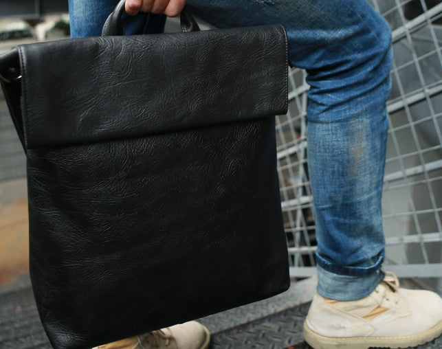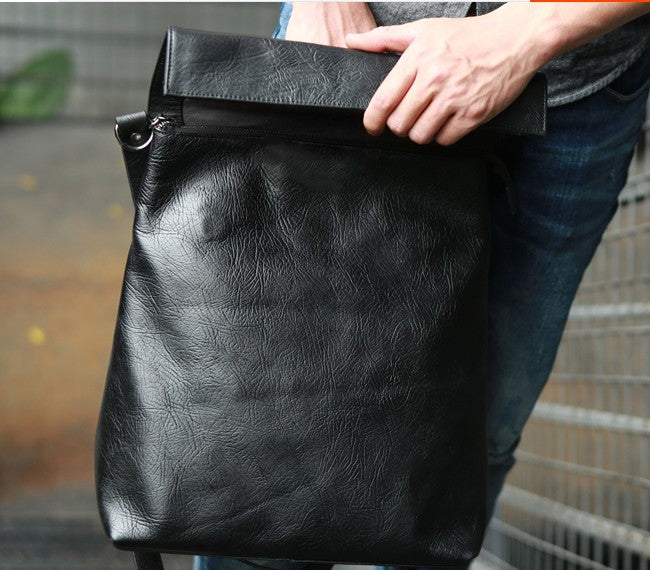 Design: Cool Black Mens Leather Backpack Travel Backpacks Laptop Backpack for men