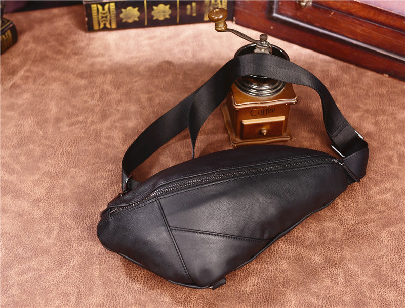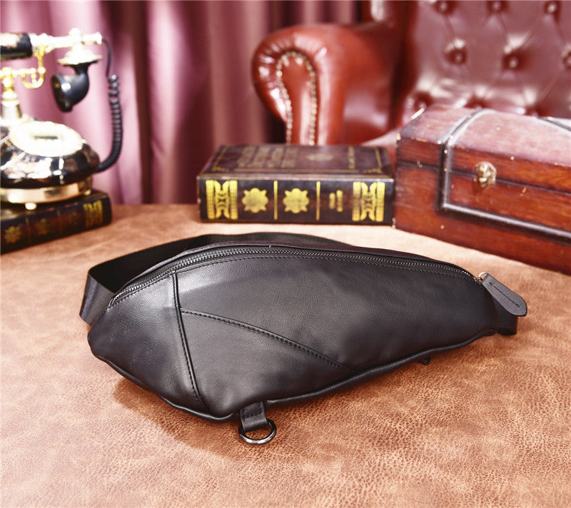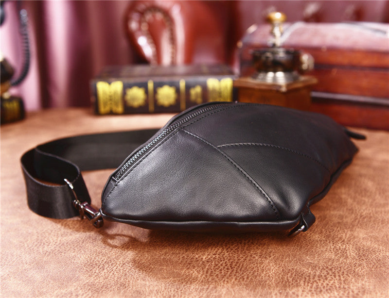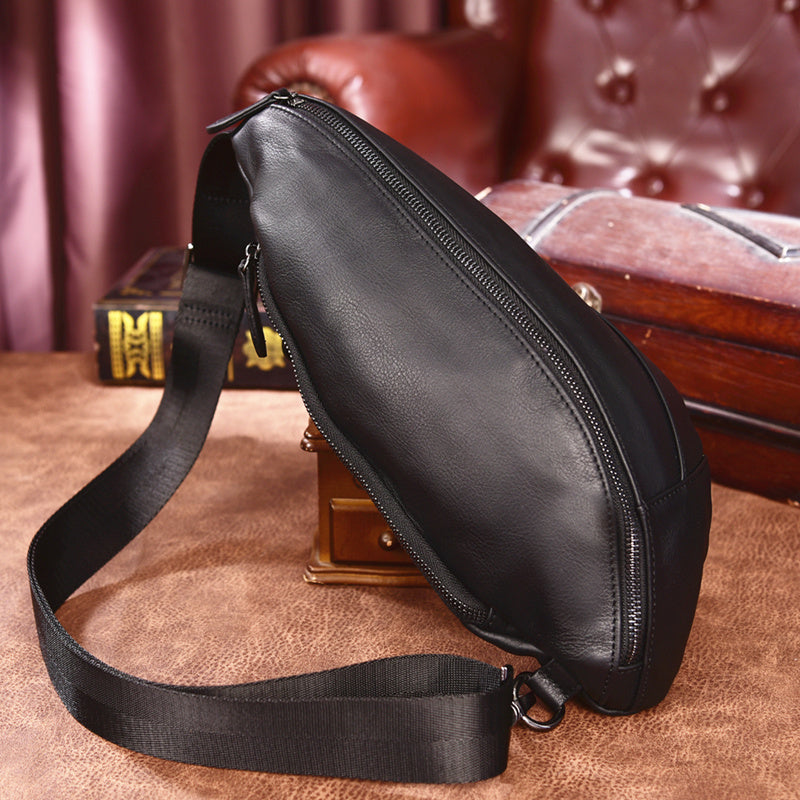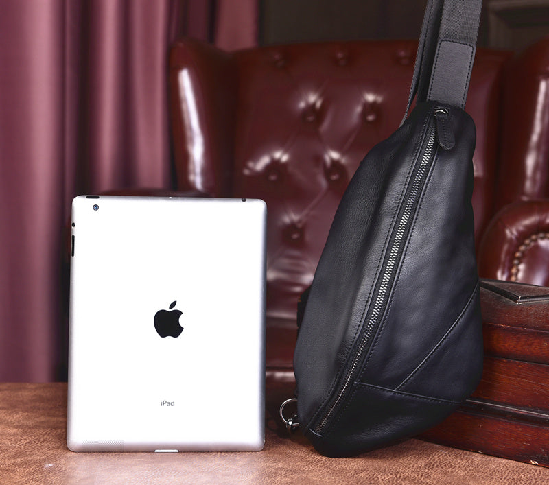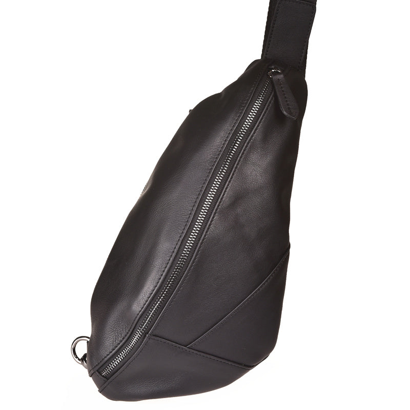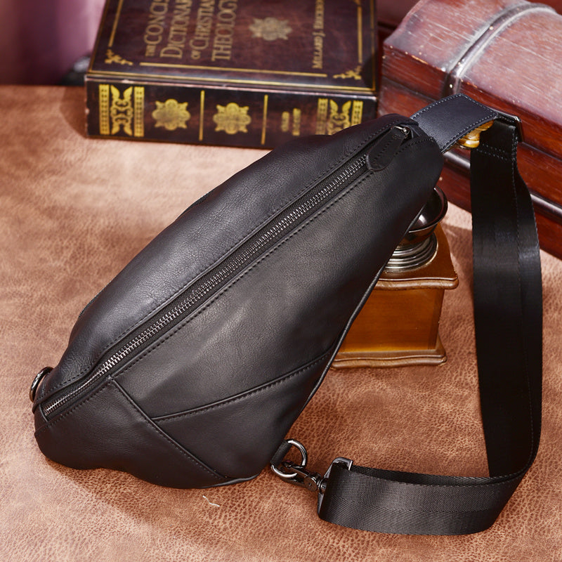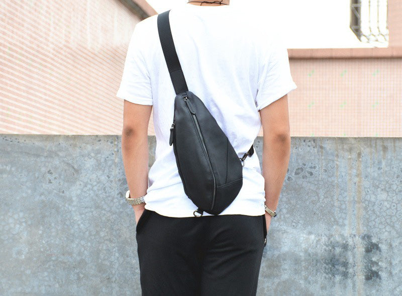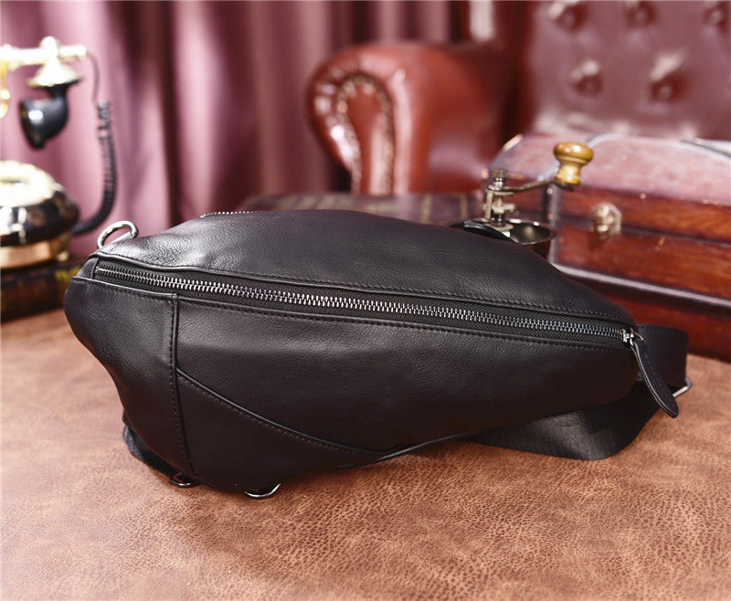 Design: Cool Black Mens Leather One Shoulder Backpack Chest Bag Sling Bag Sling Crossbody Bag For Men