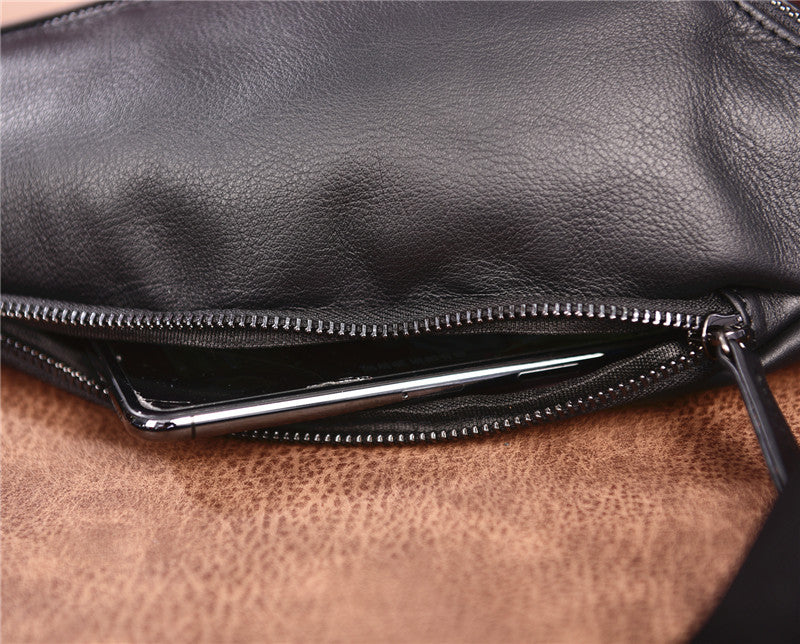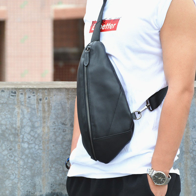 Cool Black Mens Leather One Shoulder Backpack Chest Bag Sling Bag Sling Crossbody Bag For Men
