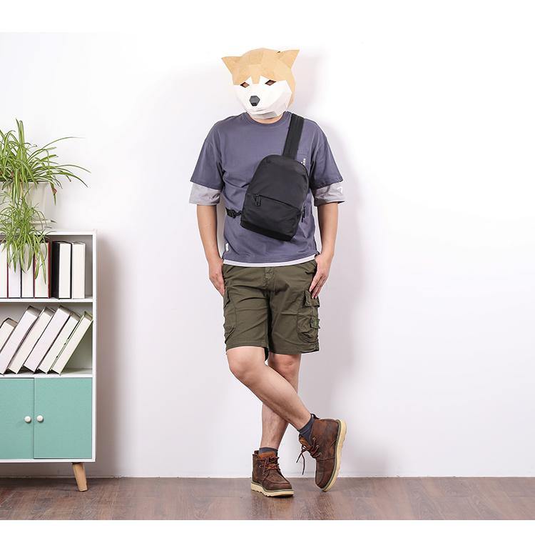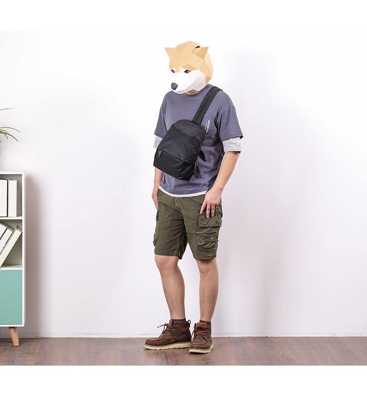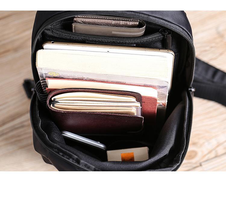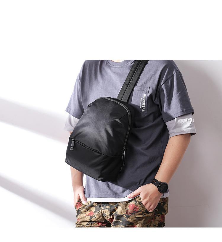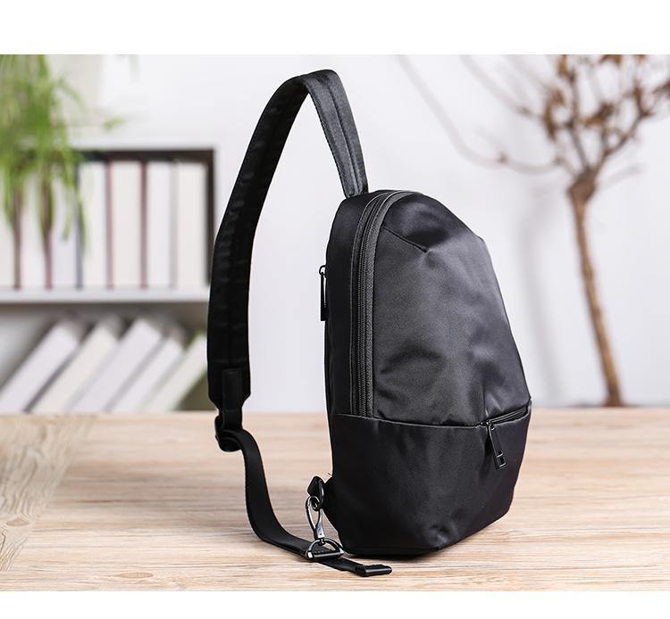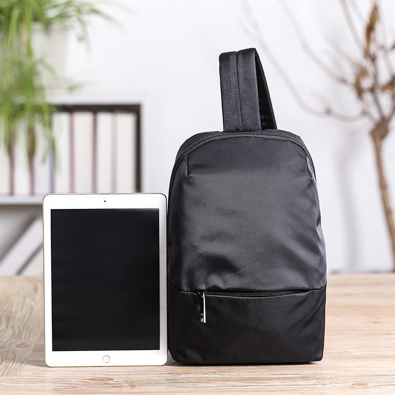 Design: Cool Black Nylon Backpack Men's 10-inch Sling Bag Chest Bag One shoulder Backpack Sports Bag For Men