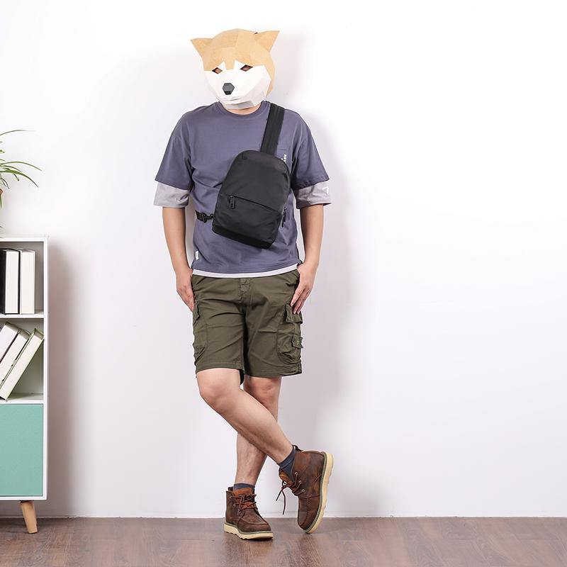 Style: Cool Black Nylon Backpack Men's 10-inch Sling Bag Chest Bag One shoulder Backpack Sports Bag For Men