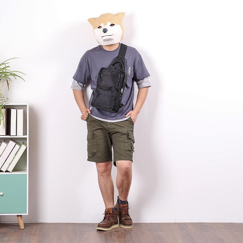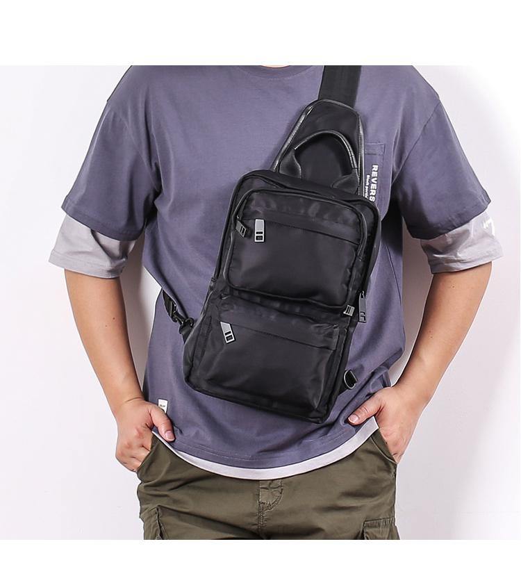 Style: Cool Black Nylon Backpack Men's Large Sling Bag Chest Bag One shoulder Backpack Sports Bag For Men