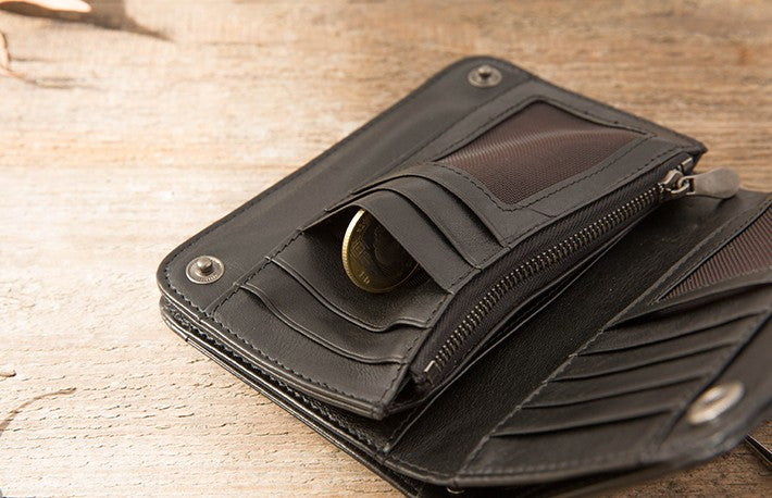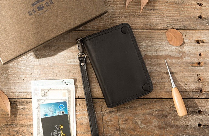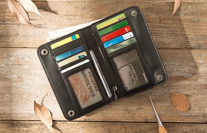 Style: Cool Black Wristlet Wallet Leather Mens Long Wallet Long Wallet for Men