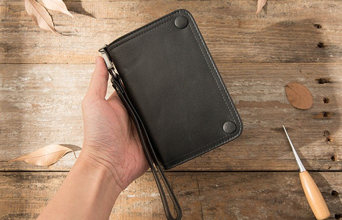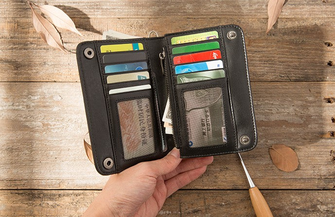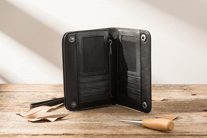 Design: Cool Black Wristlet Wallet Leather Mens Long Wallet Long Wallet for Men