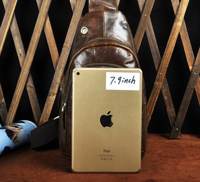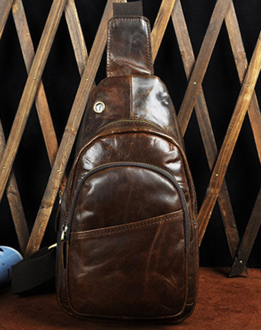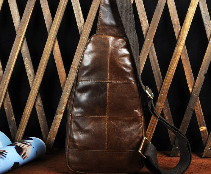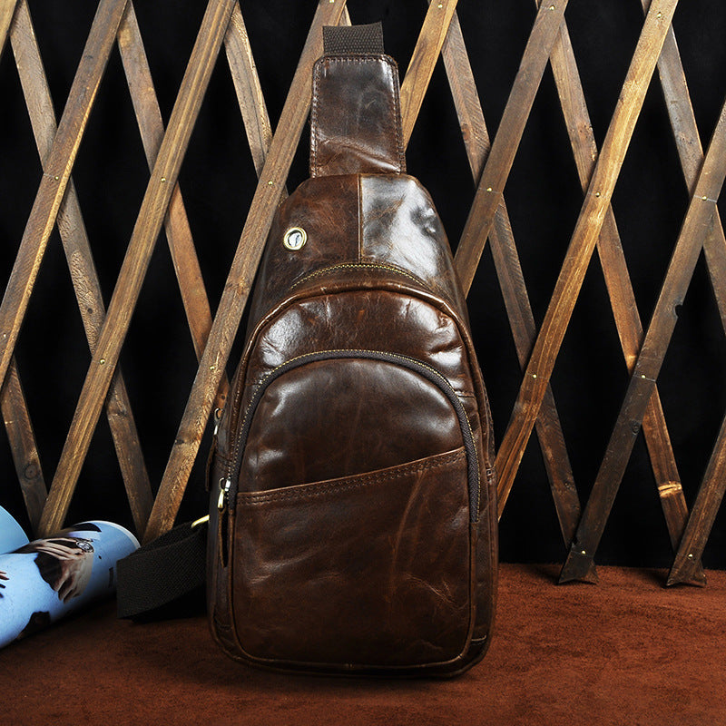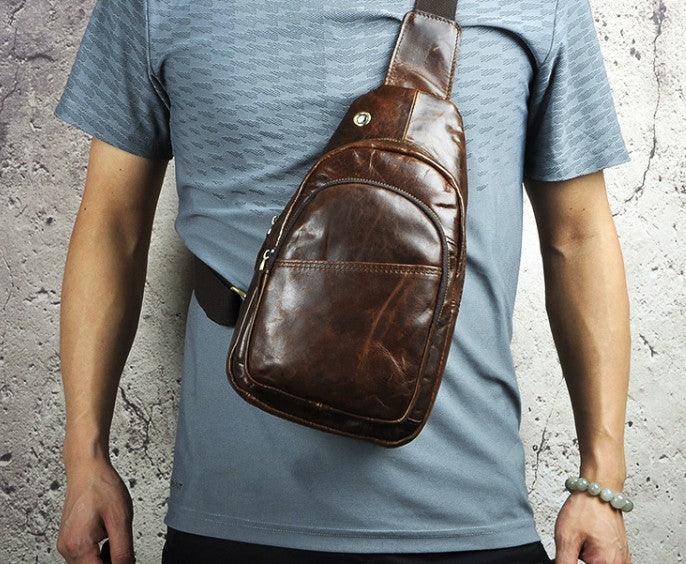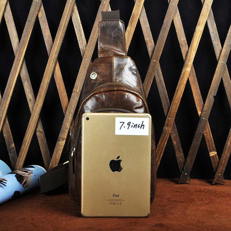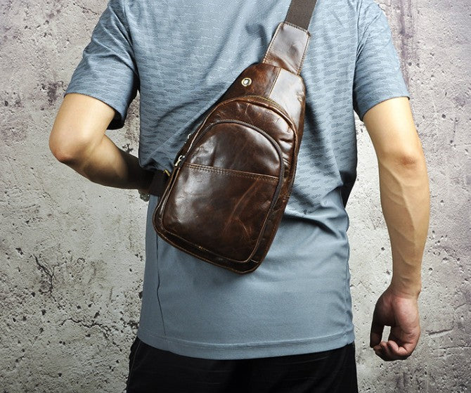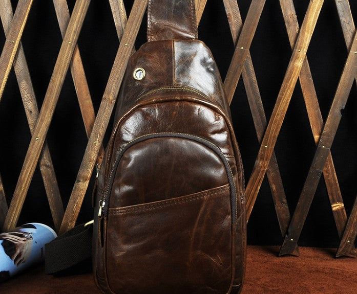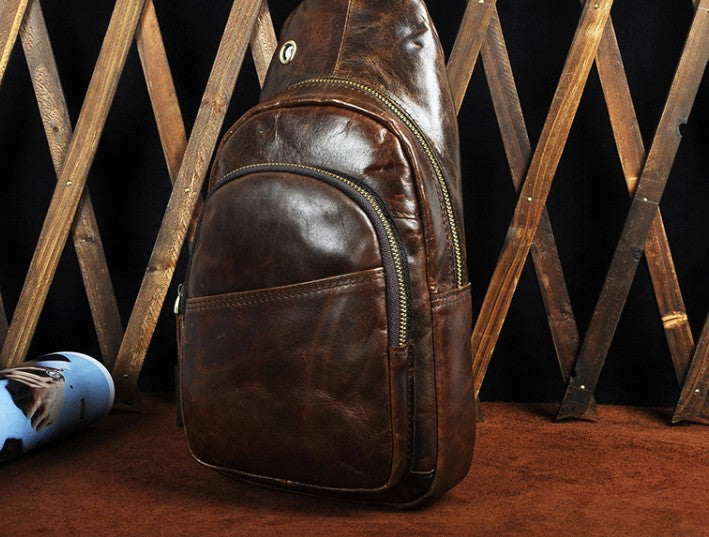 Style: Cool Coffee Leather Chest Bag Sling Bag Sling Crossbody Bag One Shoulder Backpack For Men