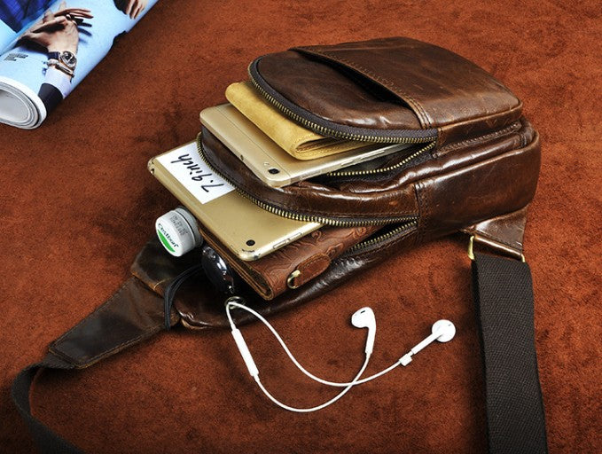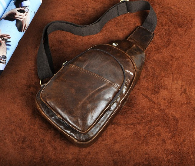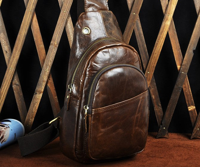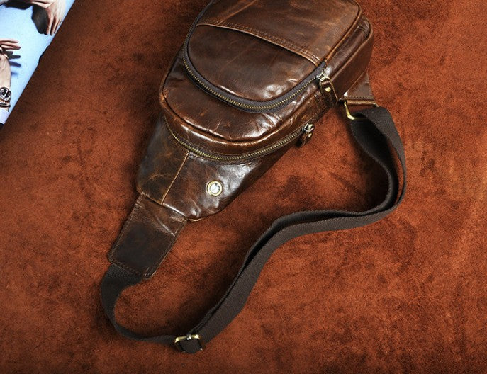 Design: Cool Coffee Leather Chest Bag Sling Bag Sling Crossbody Bag One Shoulder Backpack For Men