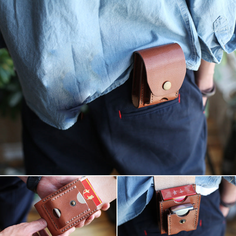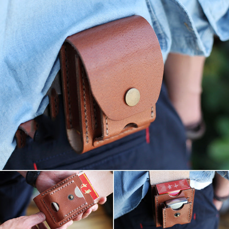 Design: Cool Brown Leather Mens Cigarette Case Cigarette Holder Belt Pouch with Belt Loop for Men