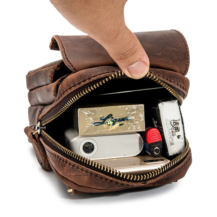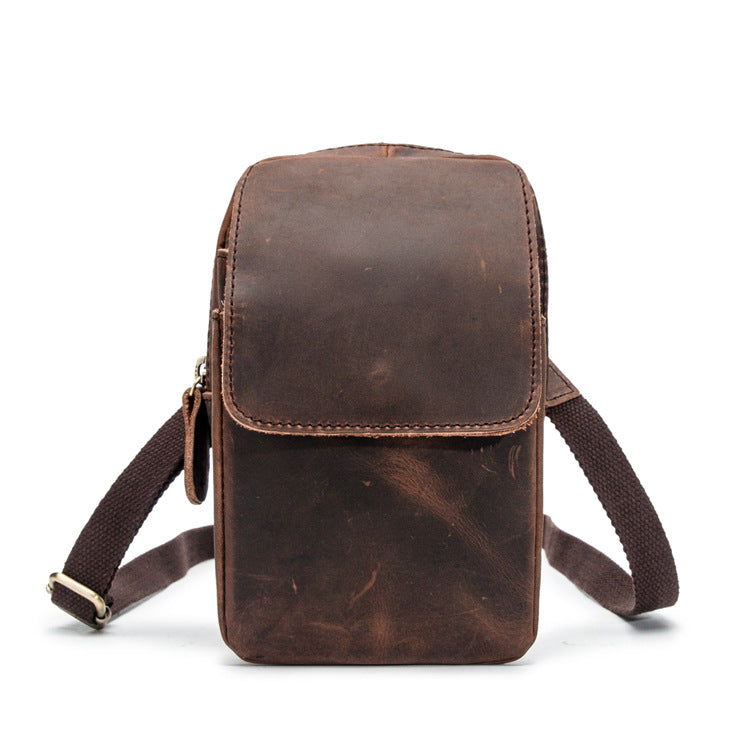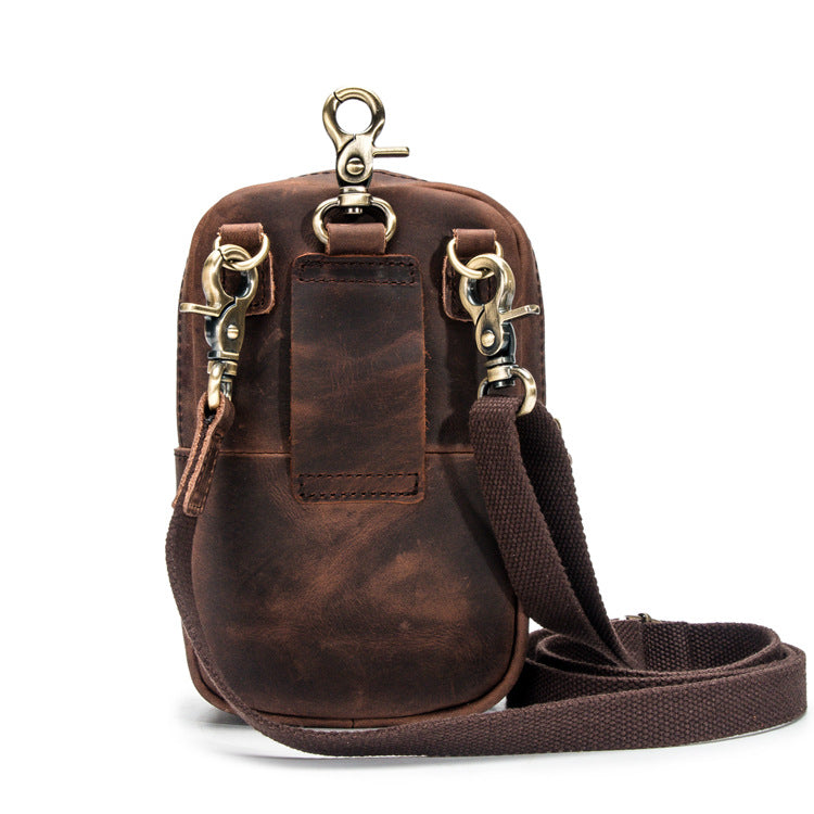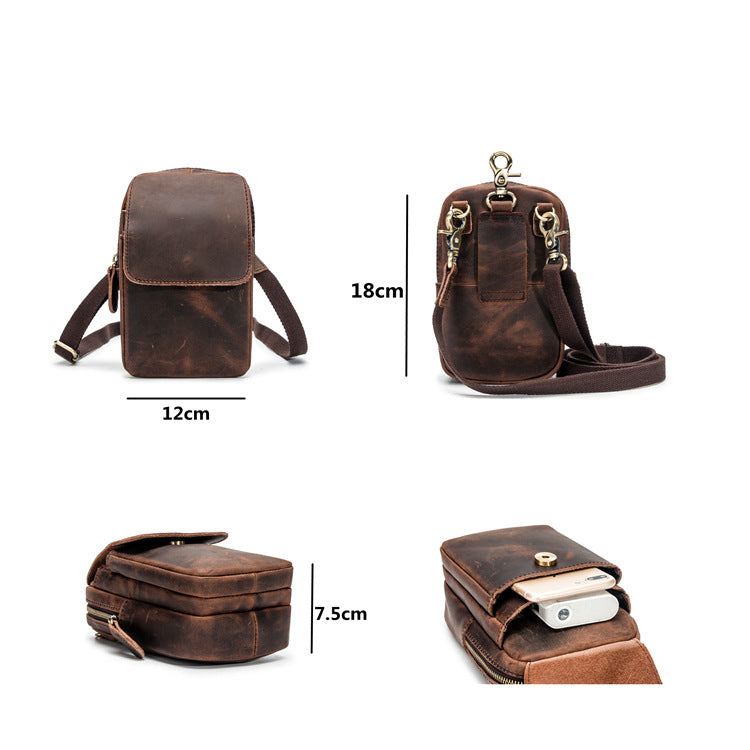 Design: Cool Brown Leather Men's Multi-functional Cell Phone Holster Small Belt Bag Mini Messenger Bag For Men