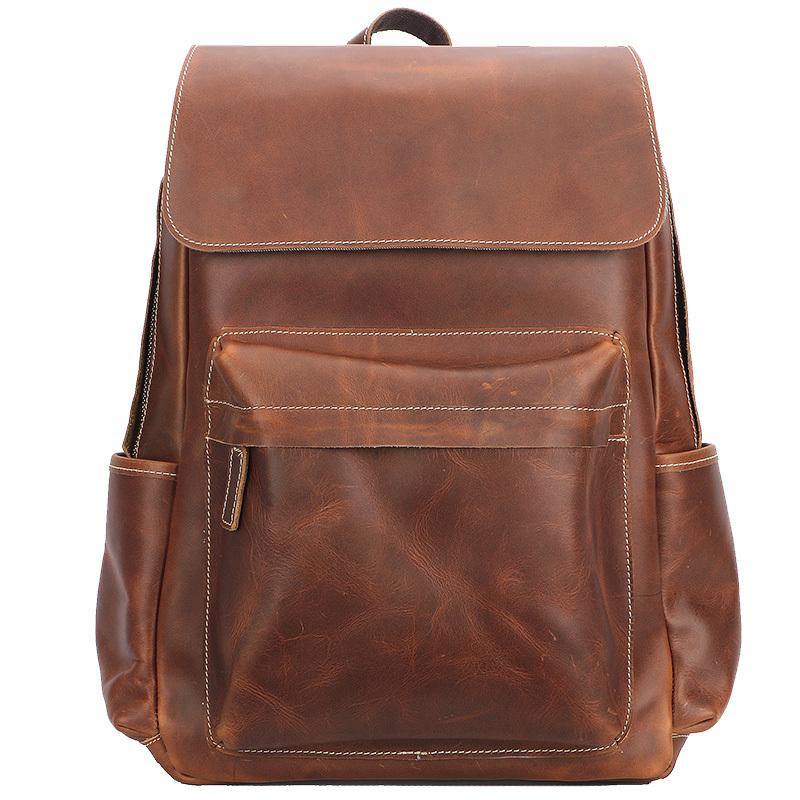 Style: Cool Brown Leather Mens Travel Backpack Work Handbag Briefcase Work Backpack For Men