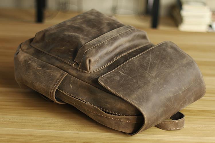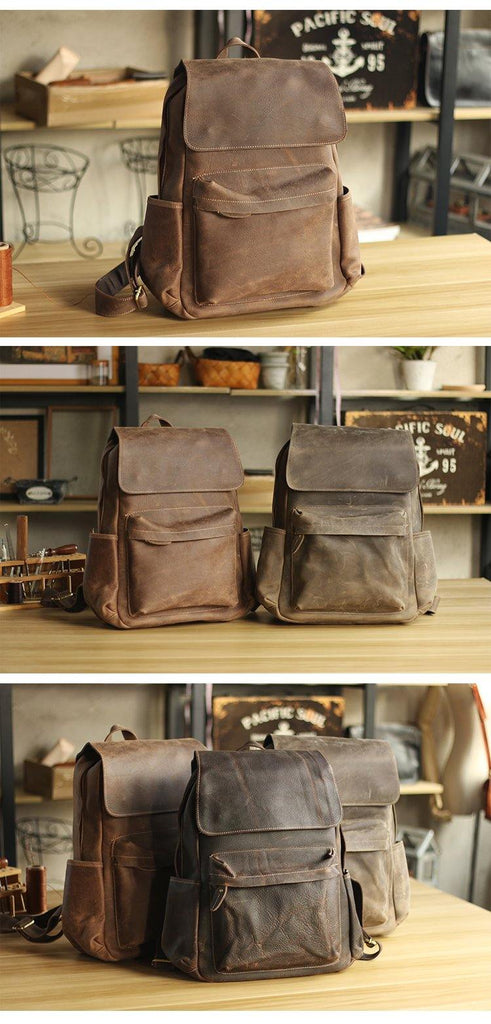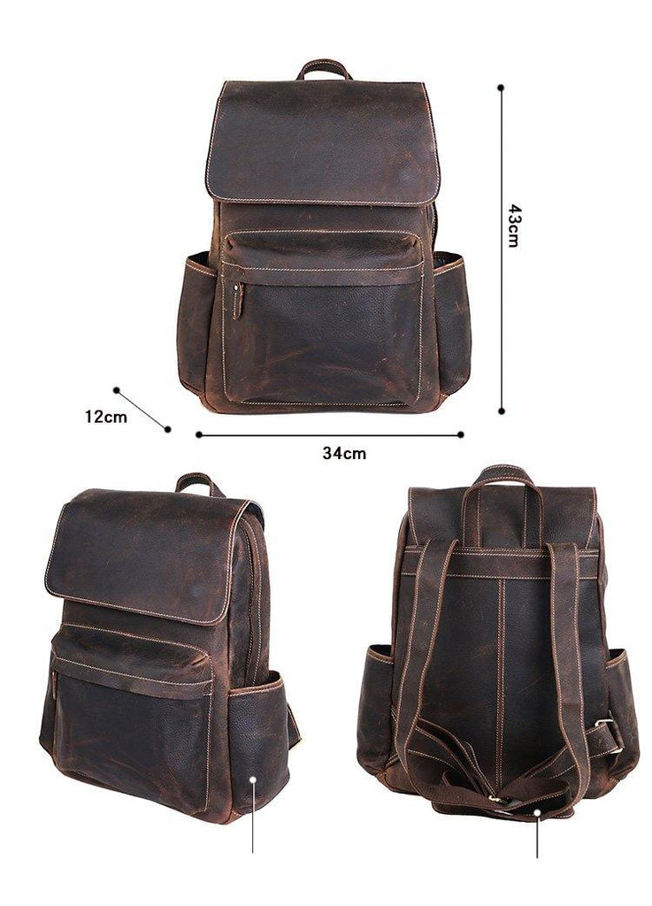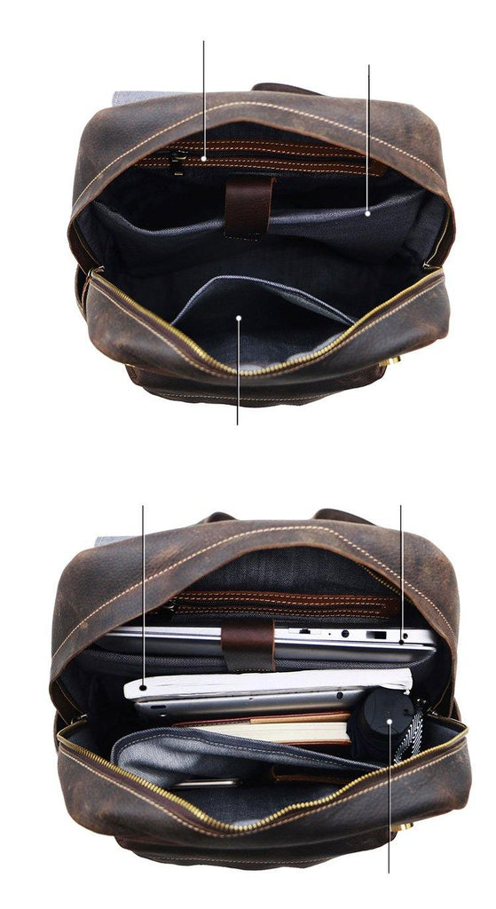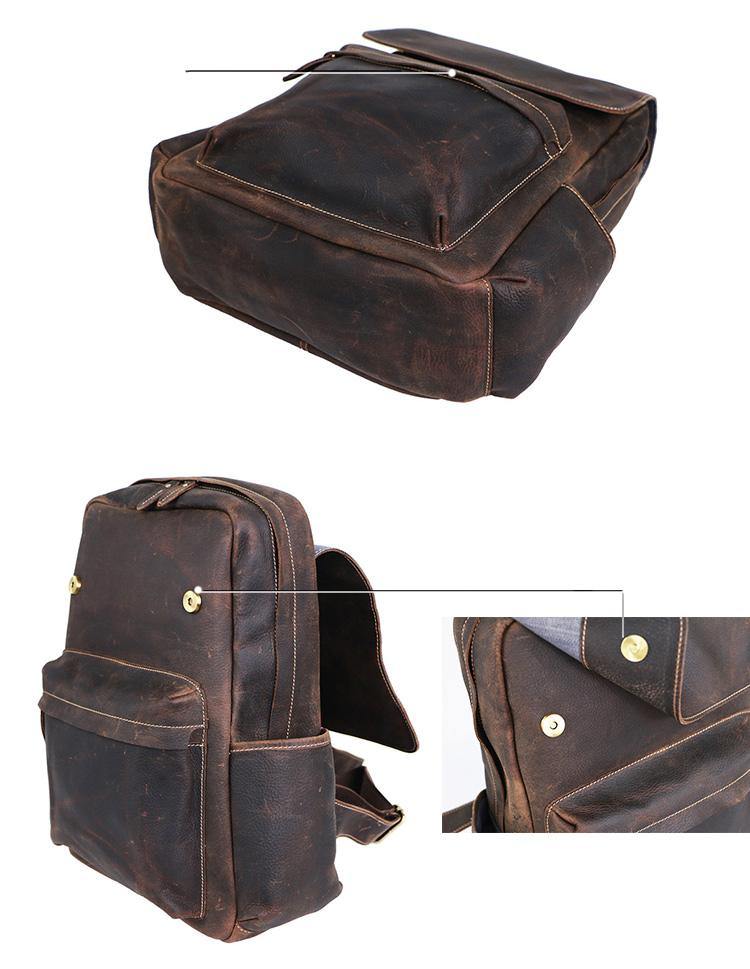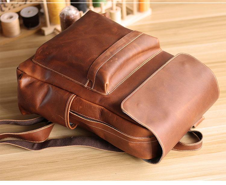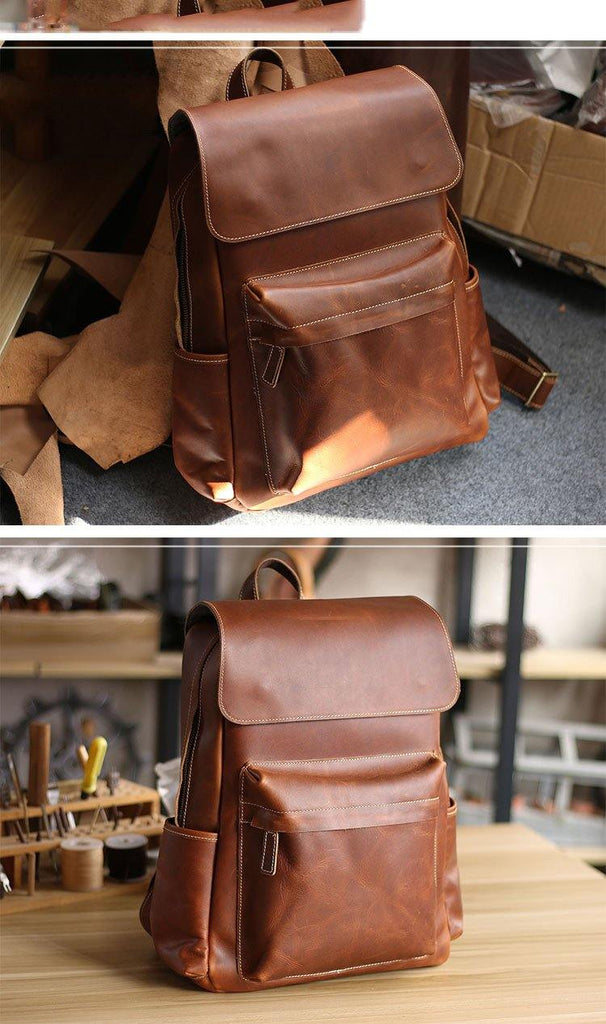 Cool Brown Leather Mens Travel Backpack Work 14'' School Backpack Work Backpack For Men