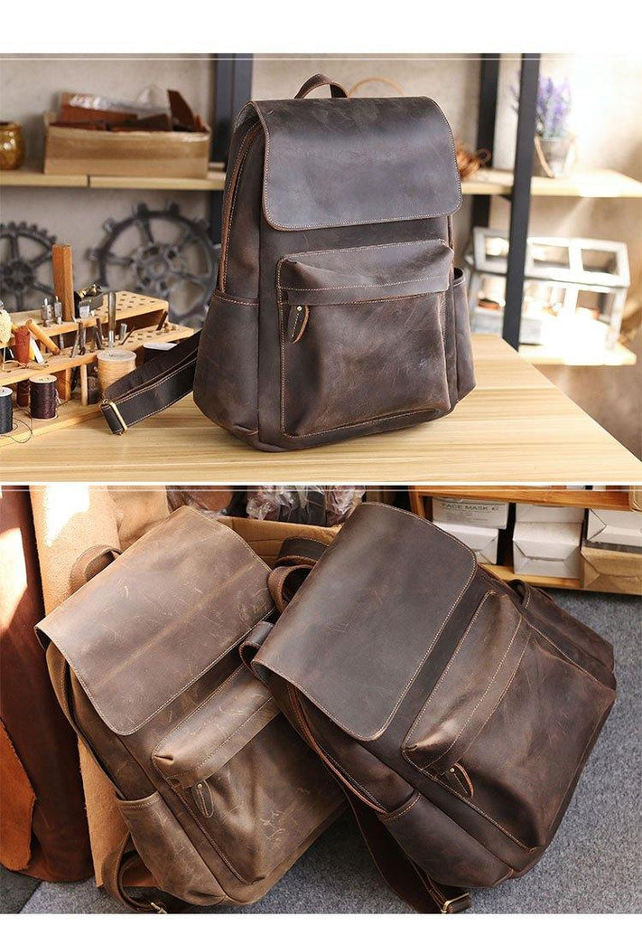 Design: Cool Brown Leather Mens Travel Backpack Work Handbag Briefcase Work Backpack For Men