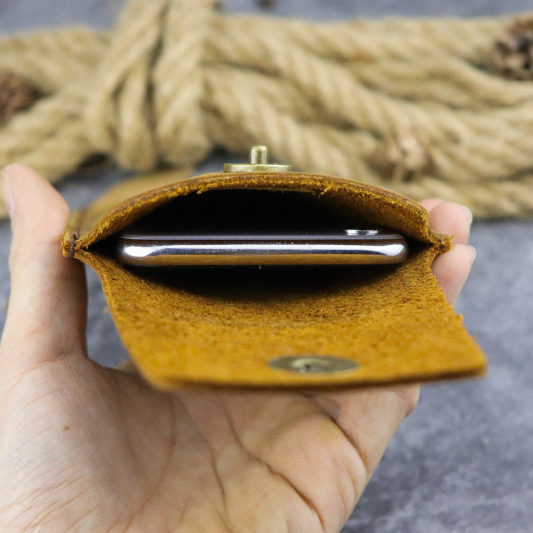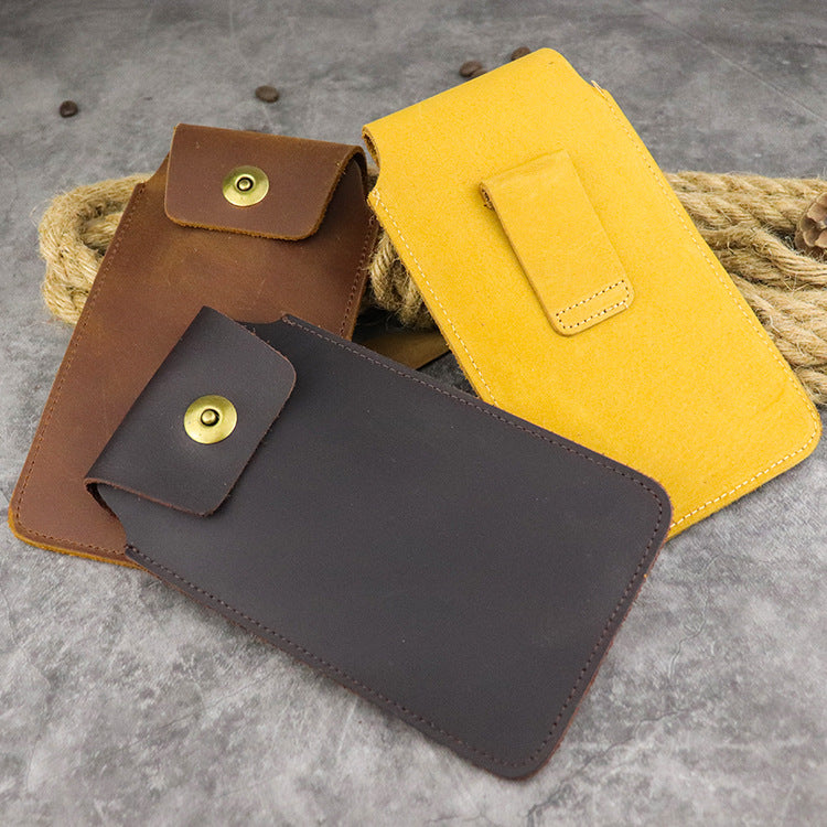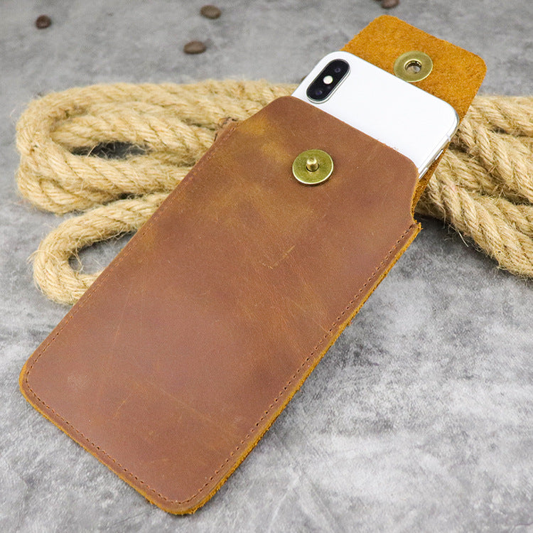 Design: Cool Brown Leather Men's Ultra Thin Cell Phone Holster Dark Brown Belt Bag Belt Pouch For MenOverview:
