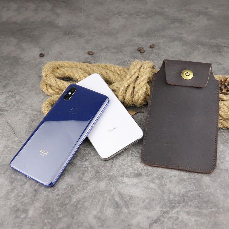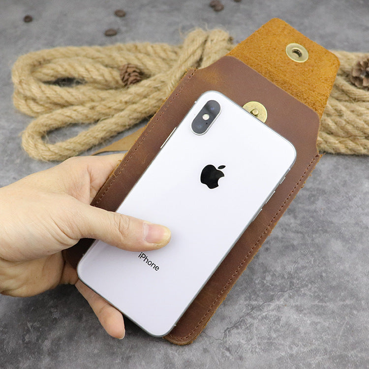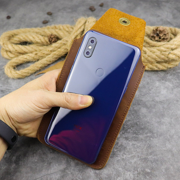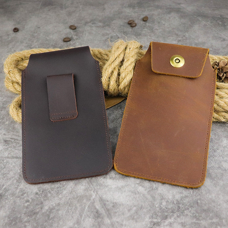 Design: Cool Brown Leather Men's Ultra Thin Cell Phone Holster Dark Brown Belt Bag Belt Pouch For Men
