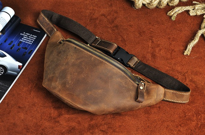 Design: Genuine Leather Belt Bag Chest Bag Sling Bag Waist Bag Crossbody Bag Travel Bag Hiking Bag For Mens