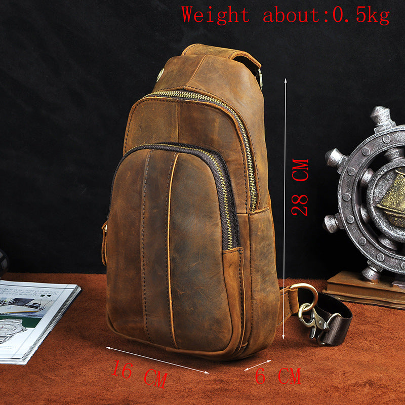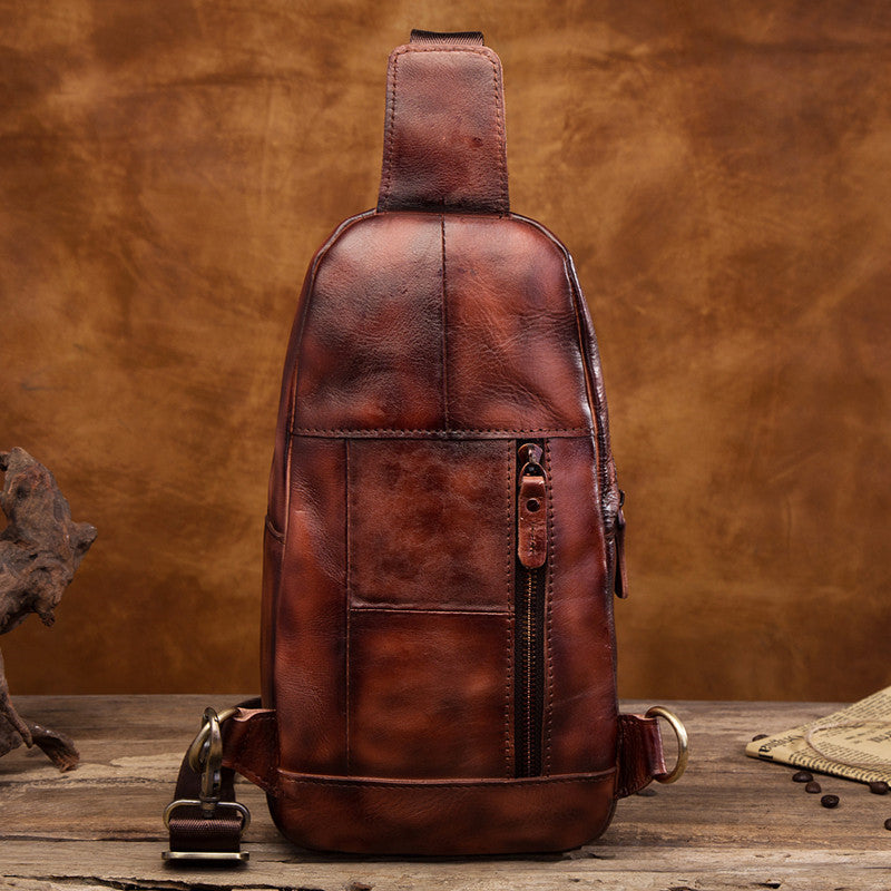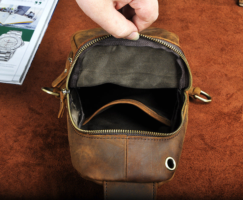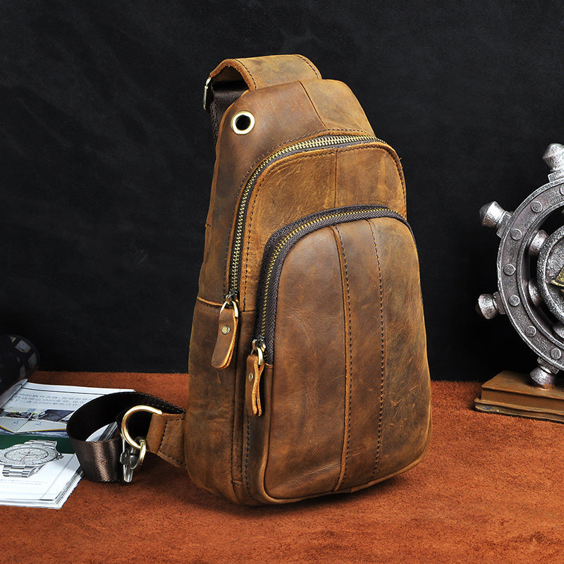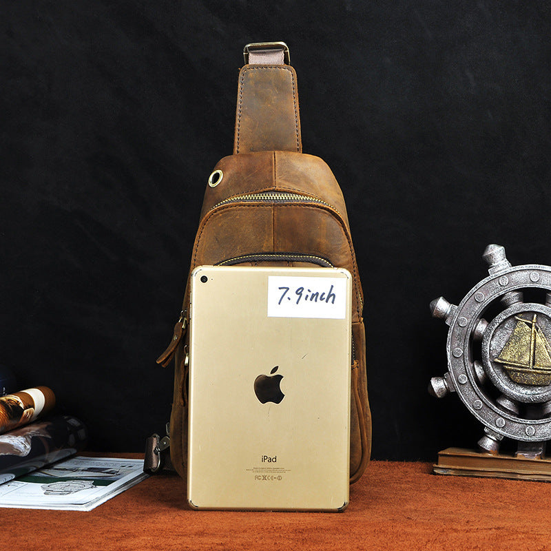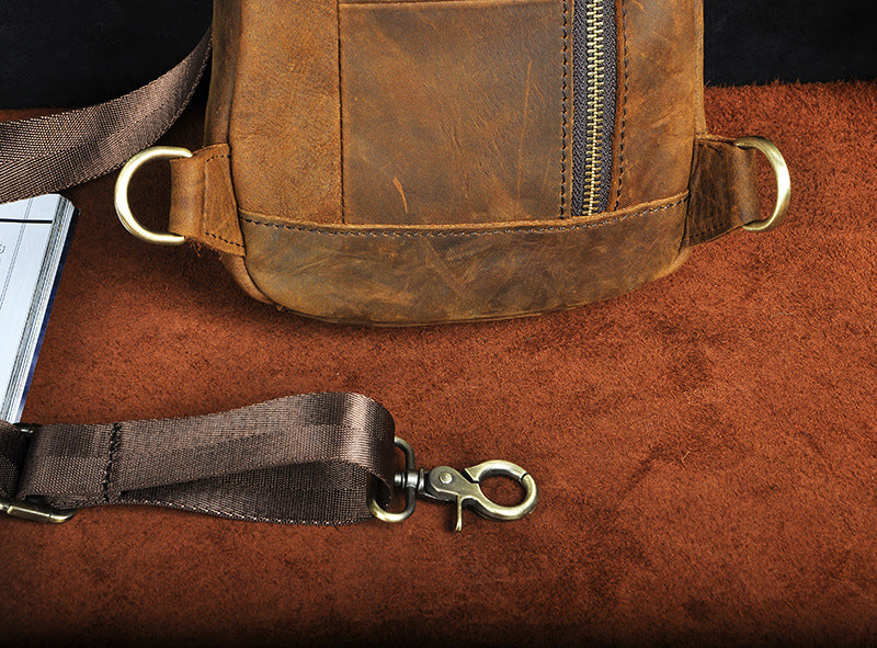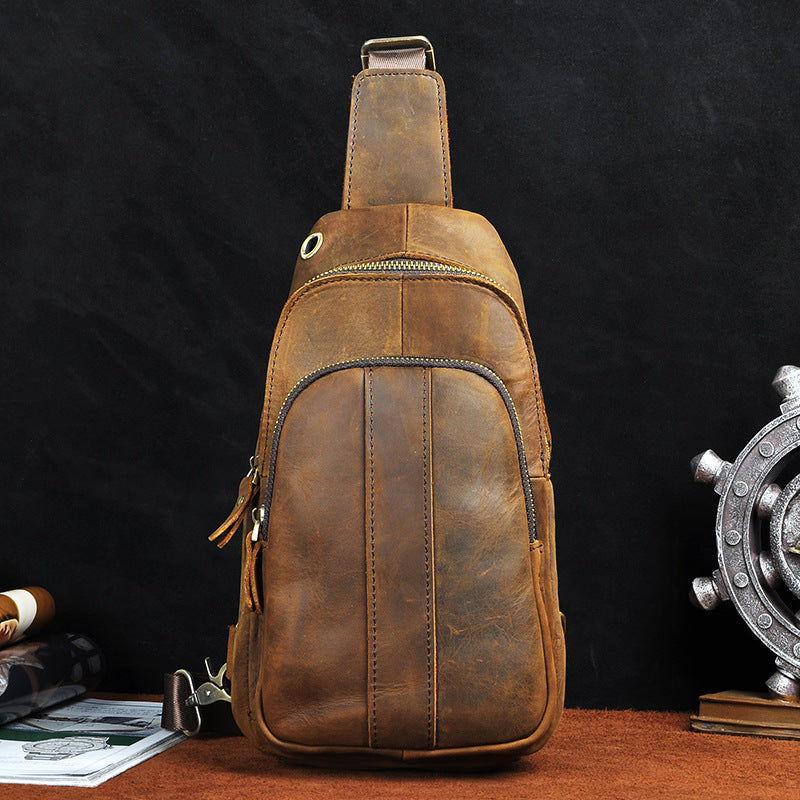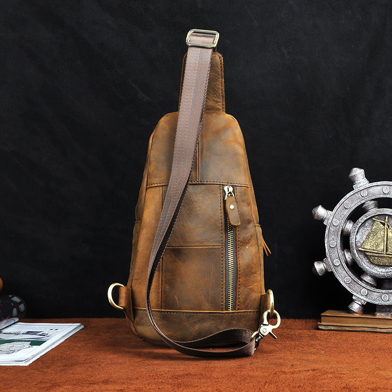 Style: Cool Brown Mens Leather One Shoulder Backpack Chest Bag Sling Bags For Men