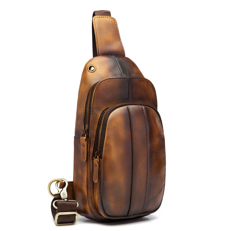 Design: Cool Brown Mens Leather One Shoulder Backpack Chest Bag Sling Bags For Men