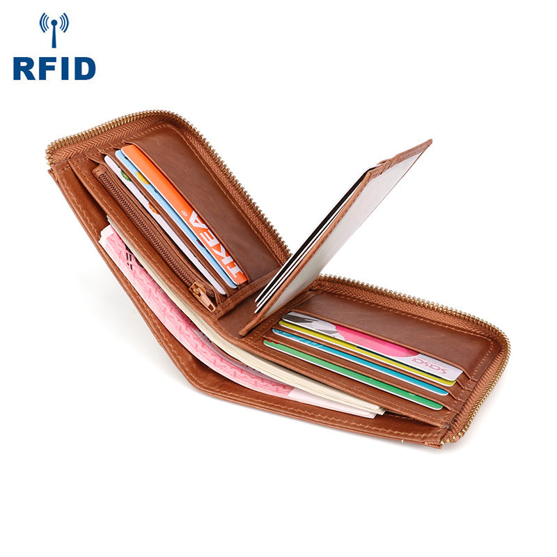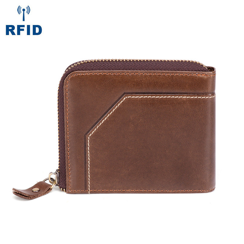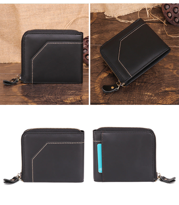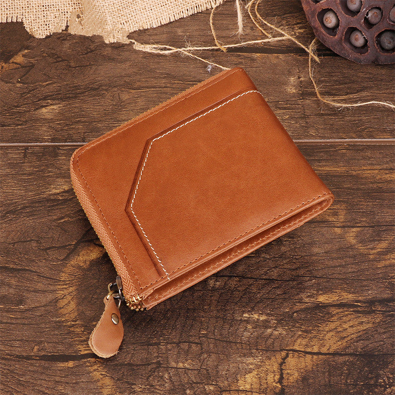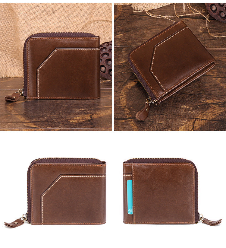 Design: Dark Brown Small MENS LEATHER Brown Trifold Wallet SLIM ZIPPER CLUTCH WRISTLET Brown Wallet FOR MEN
