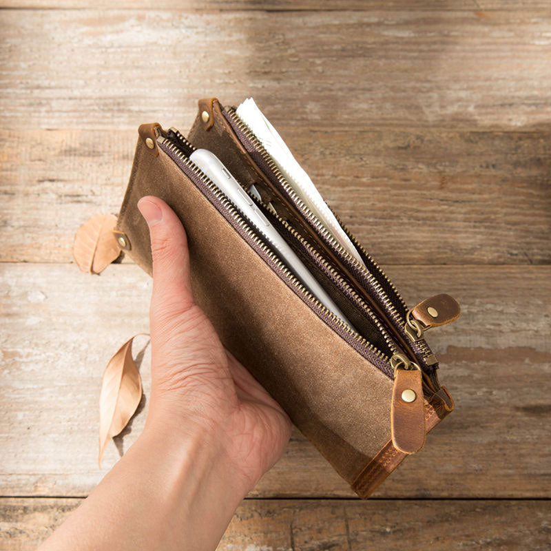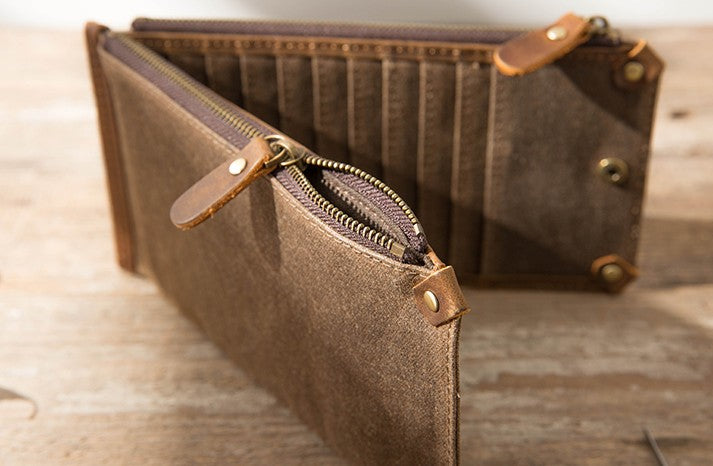 Style: Cool Canvas Leather Mens Long Wallet Long Wallet for Men