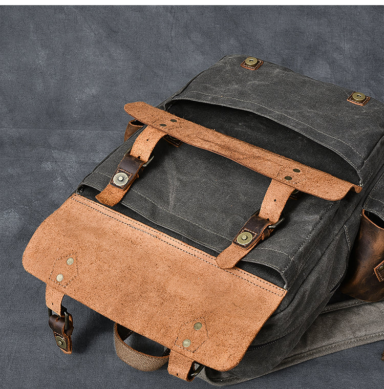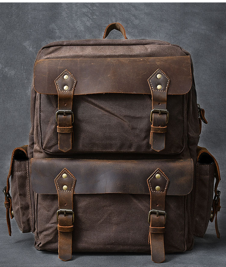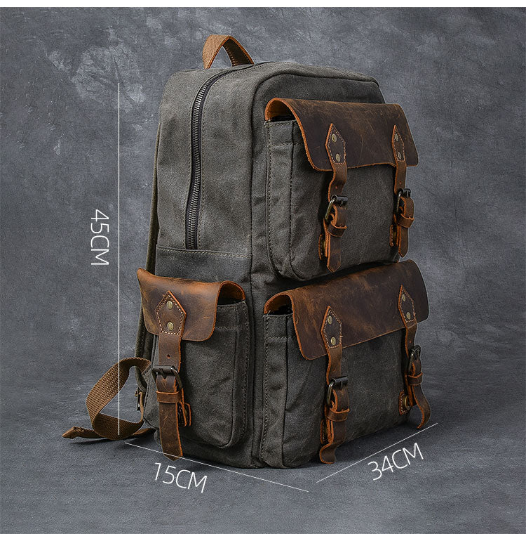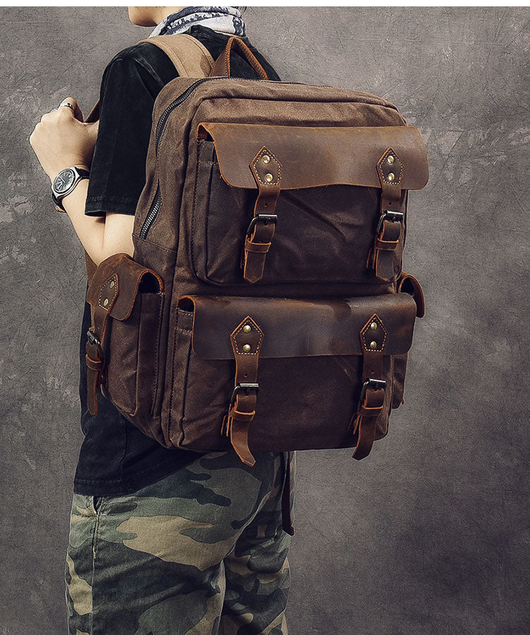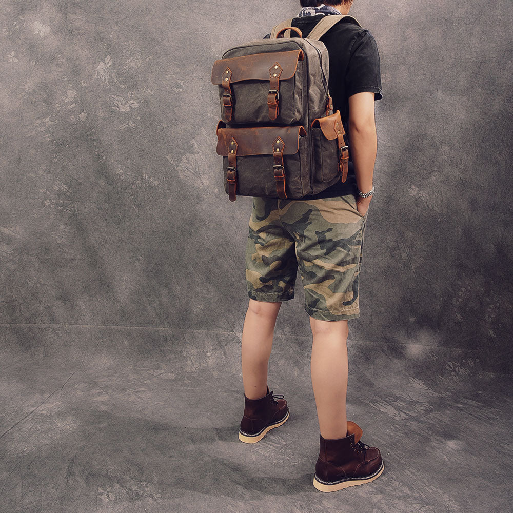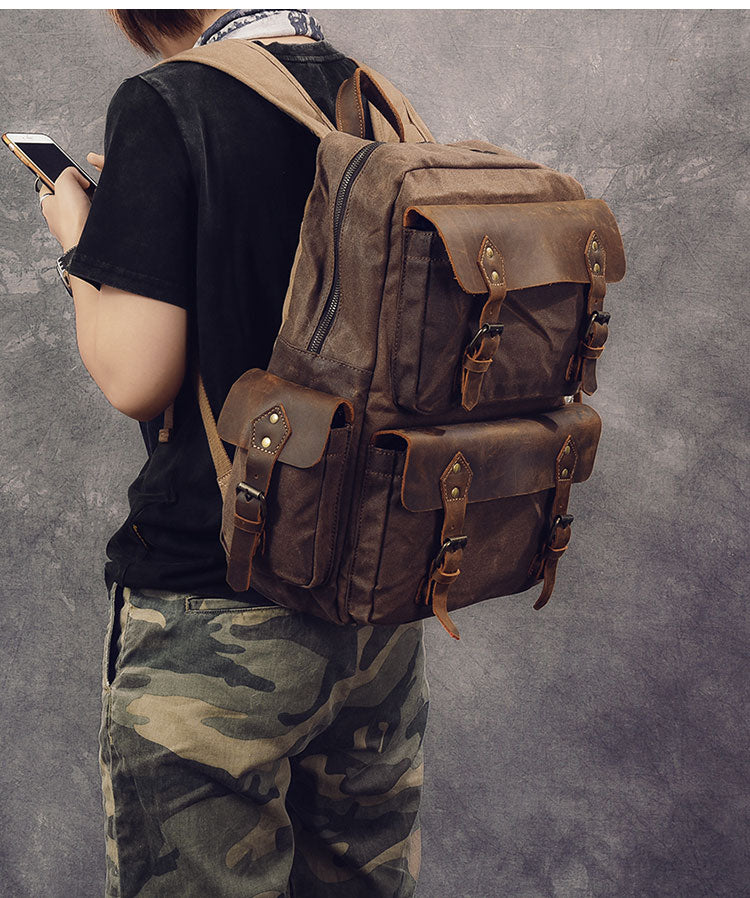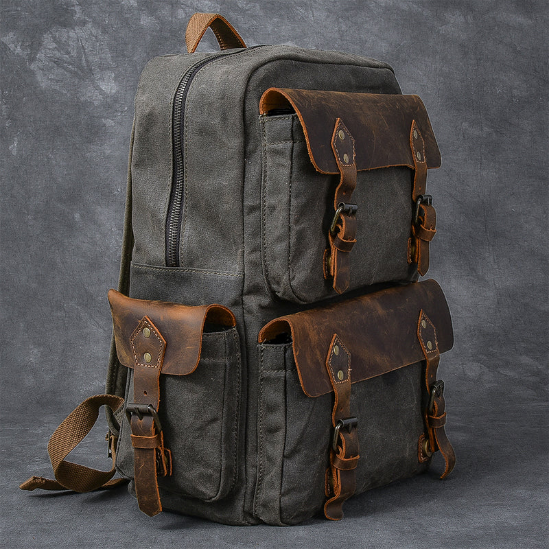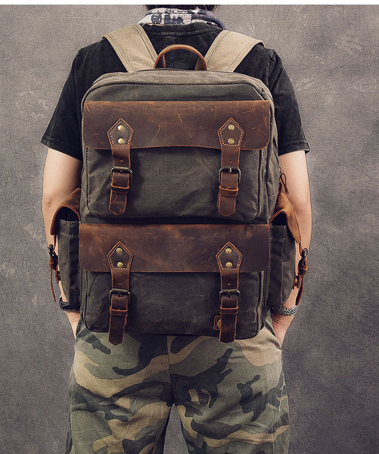 Style: Waxed Canvas Leather Mens 15" Laptop Backpack Army Green Travel Backpack College Backpack for Men