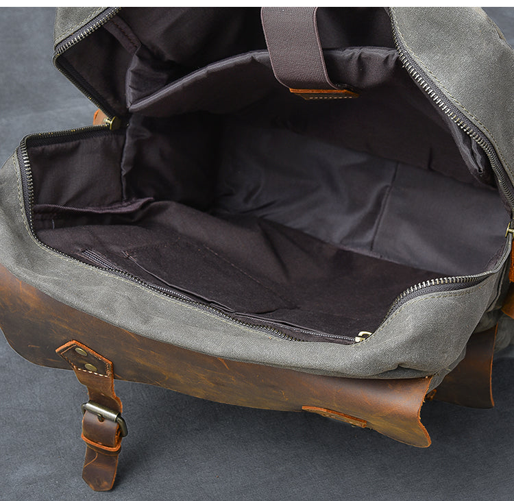Design: Waxed Canvas Leather Mens 15" Laptop Backpack Army Green Travel Backpack College Backpack for Men