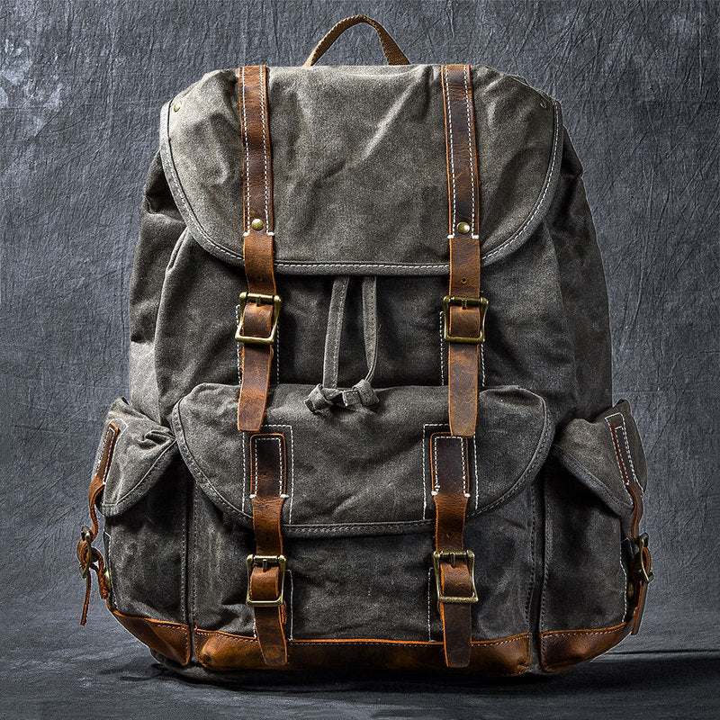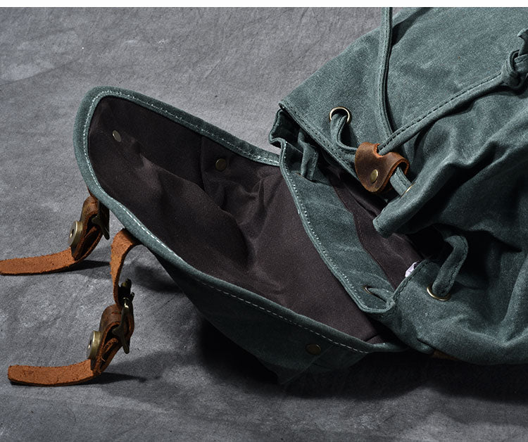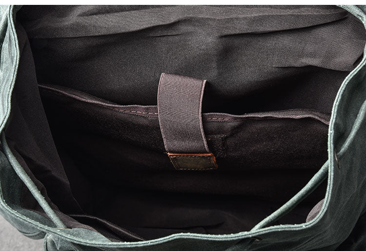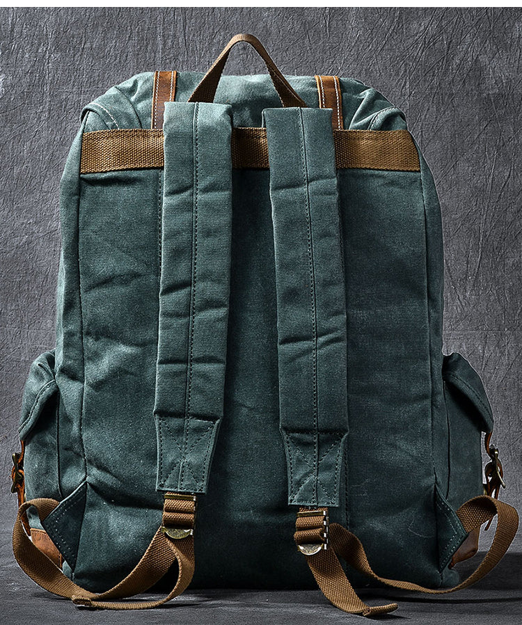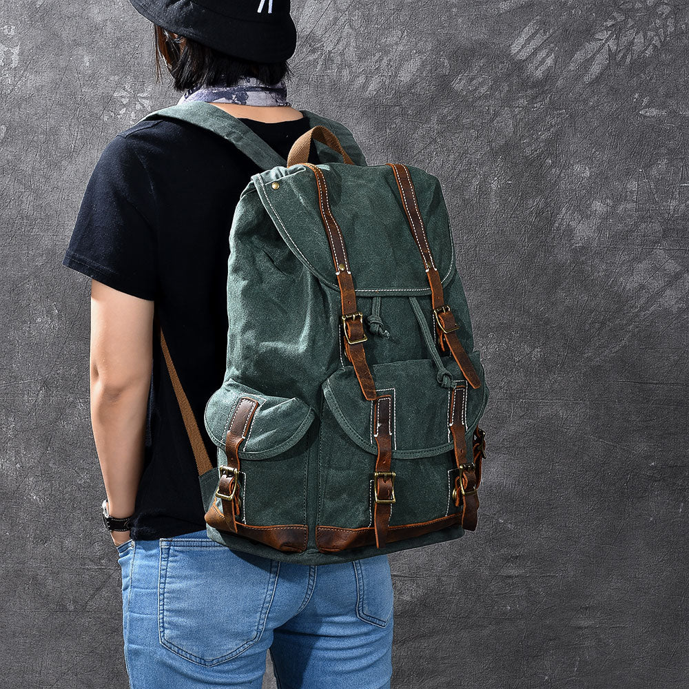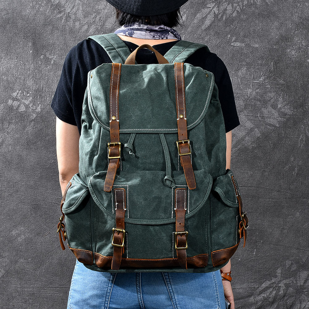 Design: Cool Canvas Leather Mens Womens 19" Khaki Backpack Green Travel Backpack College Backpack for Men