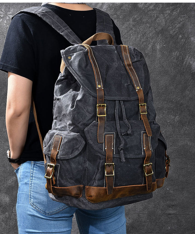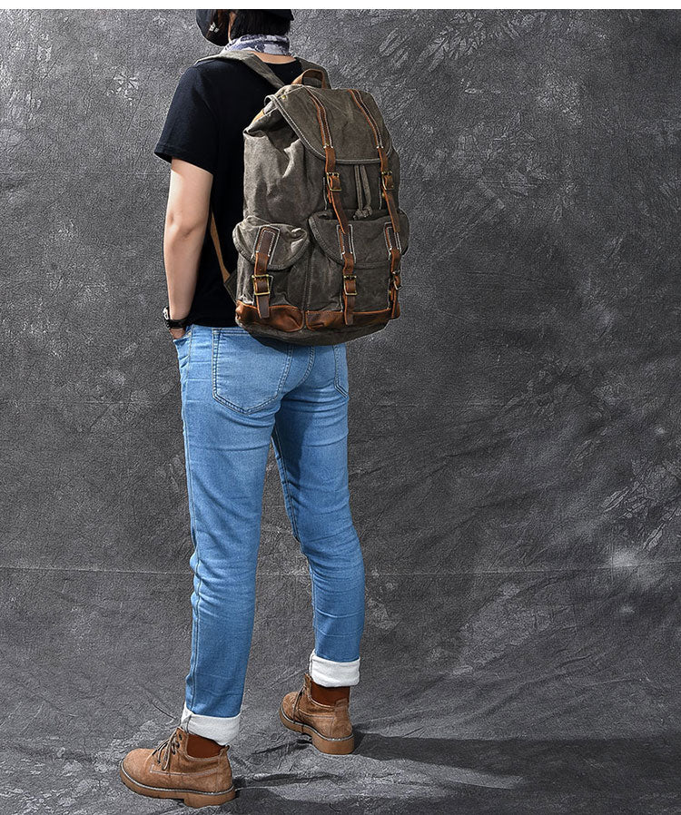 Style: Cool Canvas Leather Mens Womens 19" Khaki Backpack Green Travel Backpack College Backpack for Men