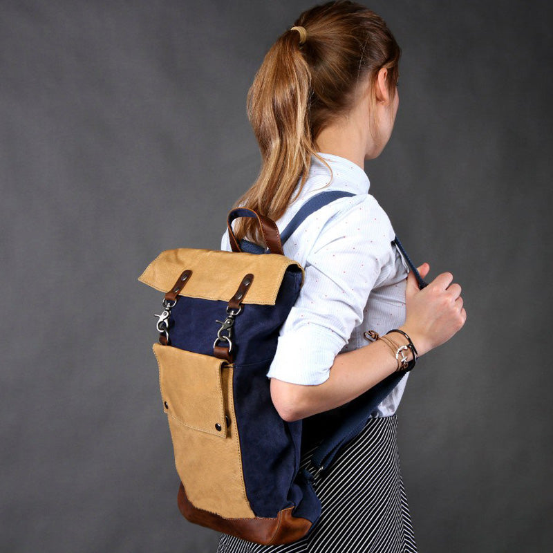 Design: Cool Canvas Leather Mens Womens British Style College Computer Backpack Travel Backpack for Men