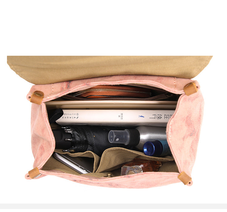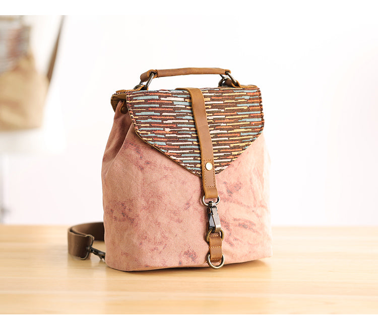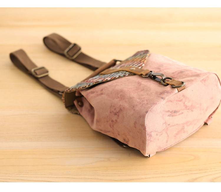Design: Cool Canvas Leather Mens Womens Small Pink Backpack Khaki Travel Backpack College Backpack for Men