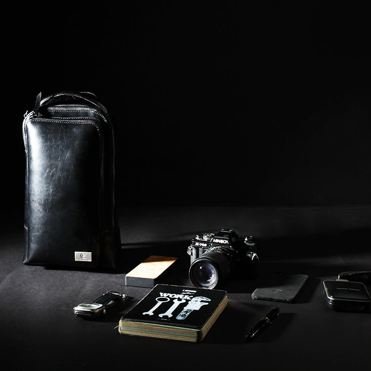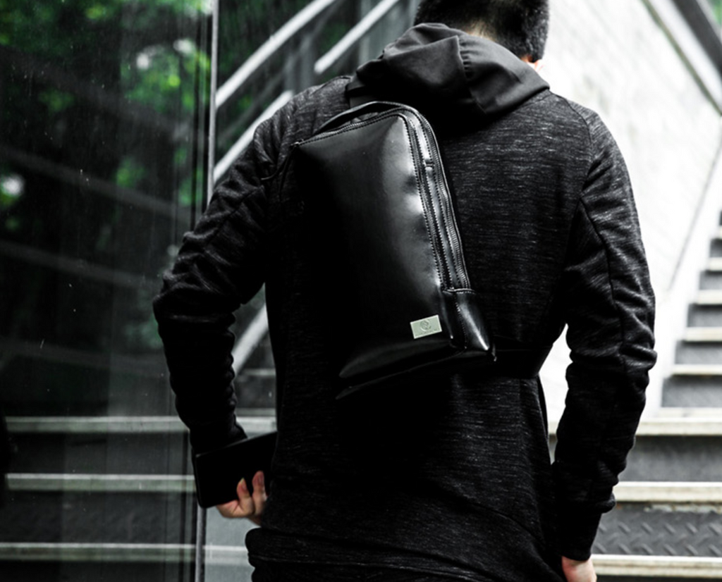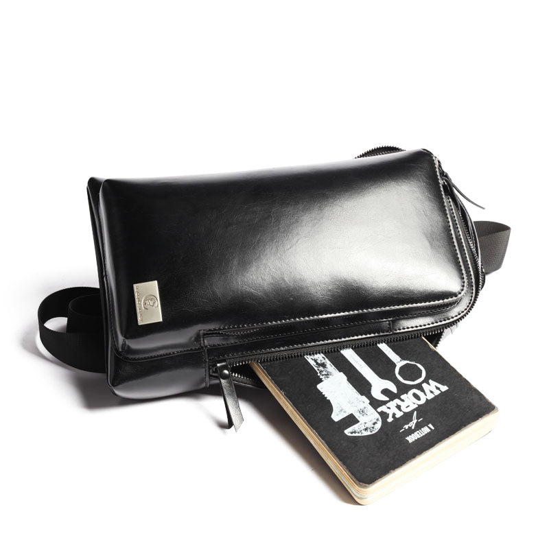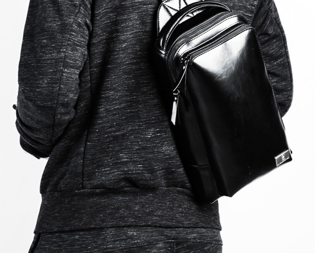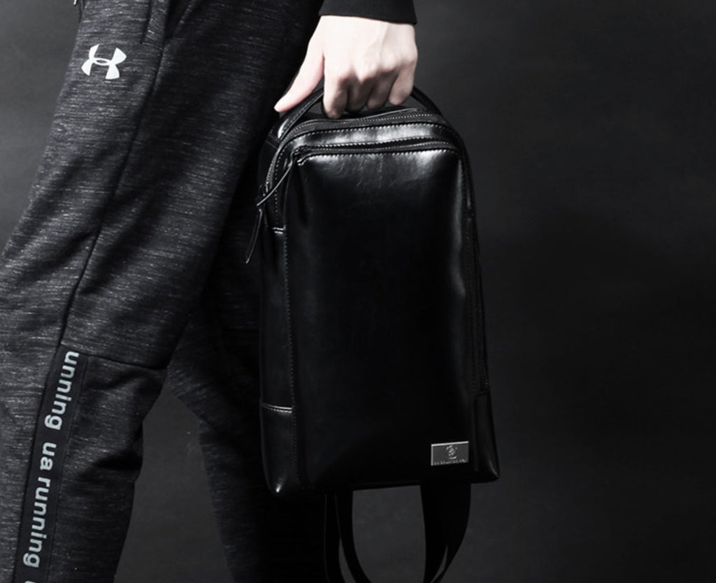 Style: Cool Leather Men's Black Sling Bag One Shoulder Backpack Chest Bag For Men